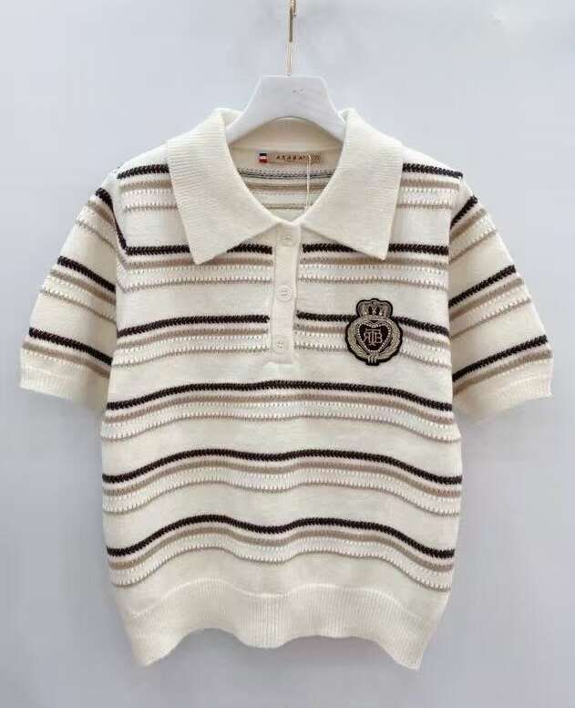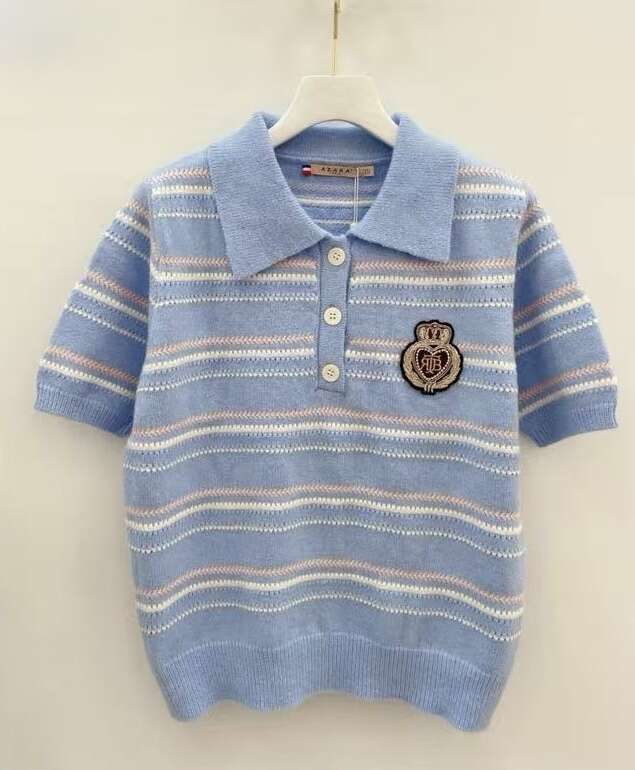 Oferujemy bluzkę z krótkim rękawem, wykonaną z wysokiej jakości, miękkiego materiału zapewniającego komfort noszenia przez cały dzień. Klasyczny kołnierzyk i ozdobna aplikacja nadają jej elegancki, lekko sportowy charakter. Ten model dostępny jest w trzech modnych kolorach: żółtym, błękitnym oraz beżowym, co pozwala na łatwe dopasowanie do każdej stylizacji. Idealna propozycja na wiosnę i lato zarówno do biura, jak i na casualowe wyjścia. Szeroki wybór rozmiarów gwarantuje, że każda kobieta znajdzie idealną opcję dla siebie. Zachęcamy do zakupu hurtowego — ta bluzka z pewnością będzie hitem w każdym sklepie!
