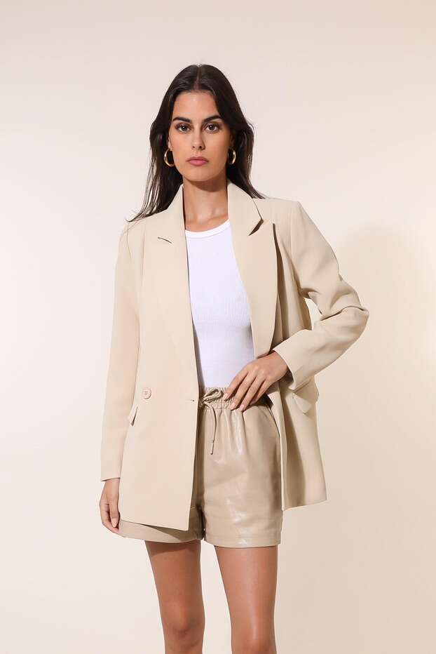 Klasyczny żakiet o prostym kroju, zapinany na guziki, wykonany z wysokiej jakości materiału. Ponadczasowy styl, komfort i uniwersalność na każdą okazję.