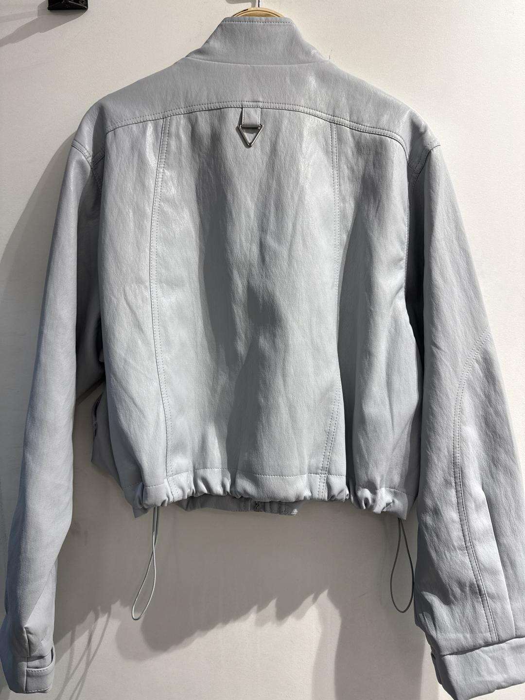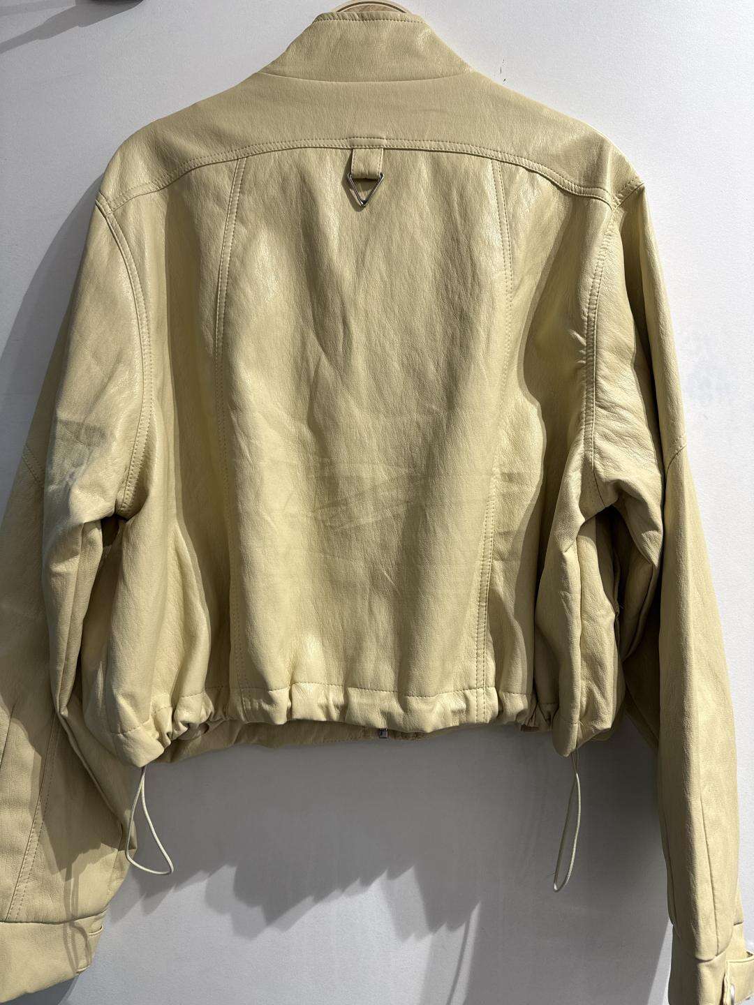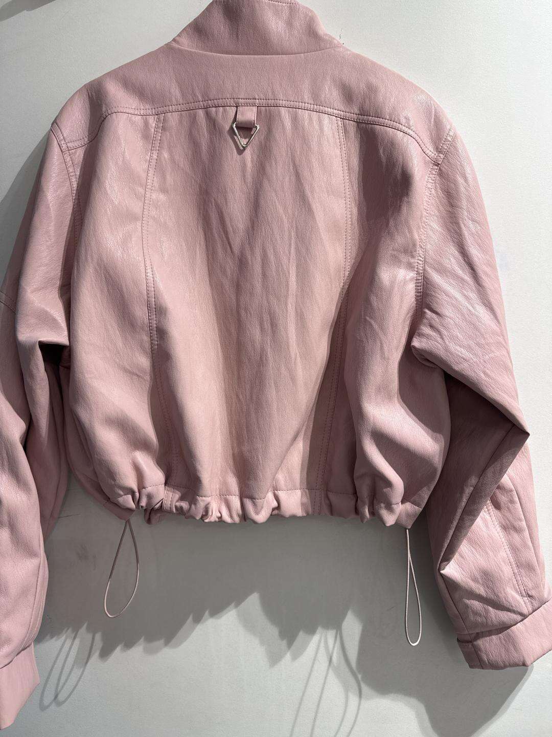 Krótka, modna kurtka o oversize’owym kroju, zapinana na suwak i napy, z praktycznymi kieszeniami i regulowanym dołem.
