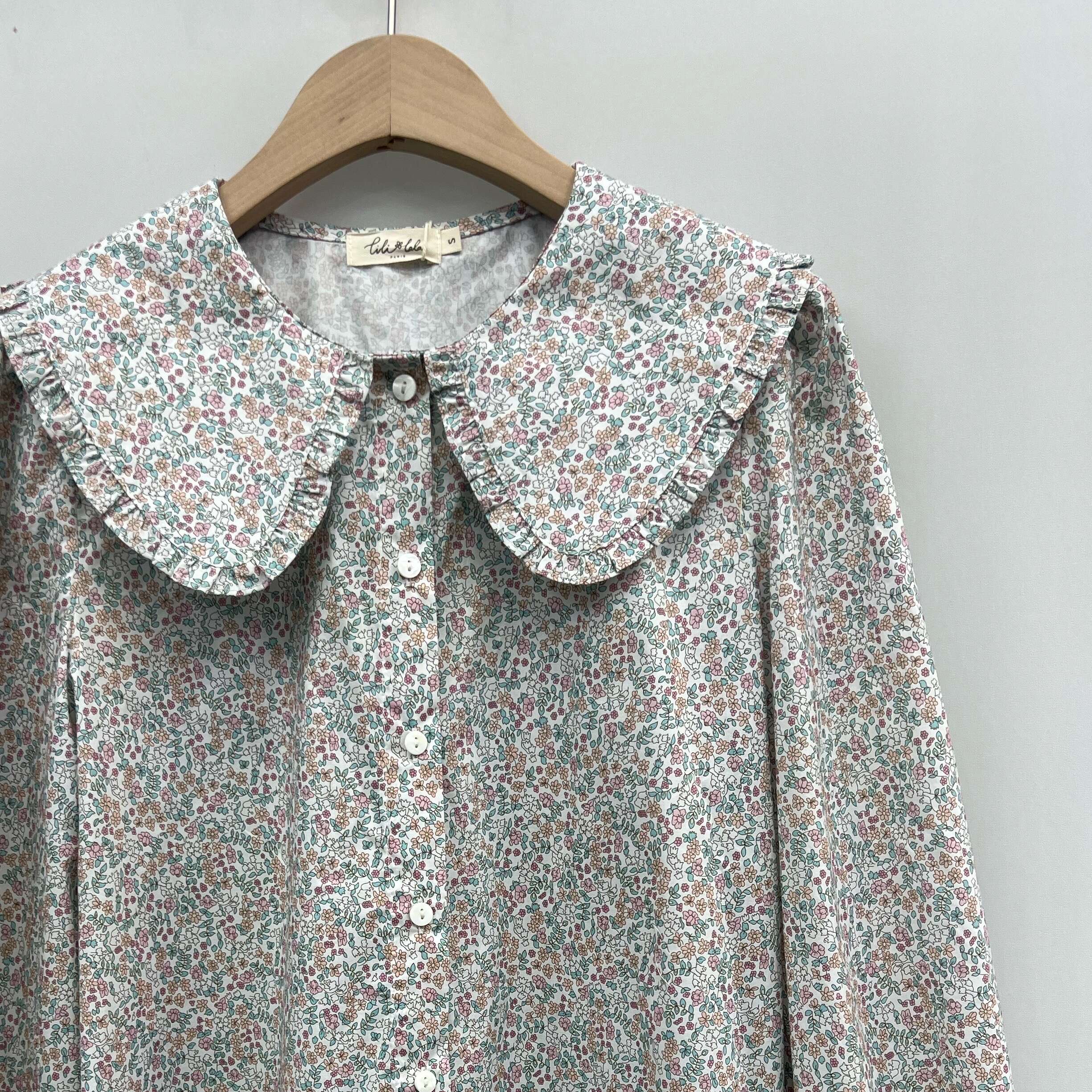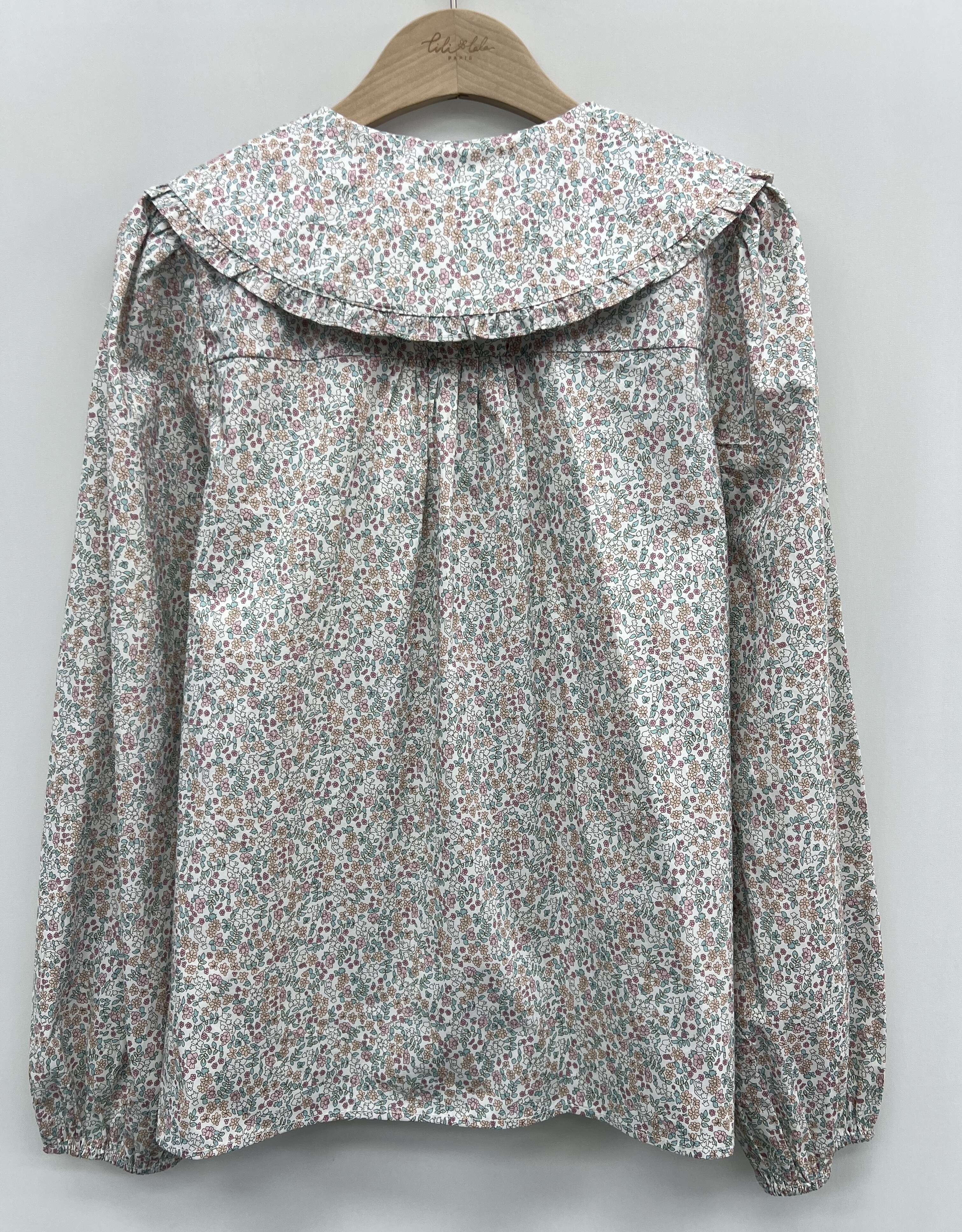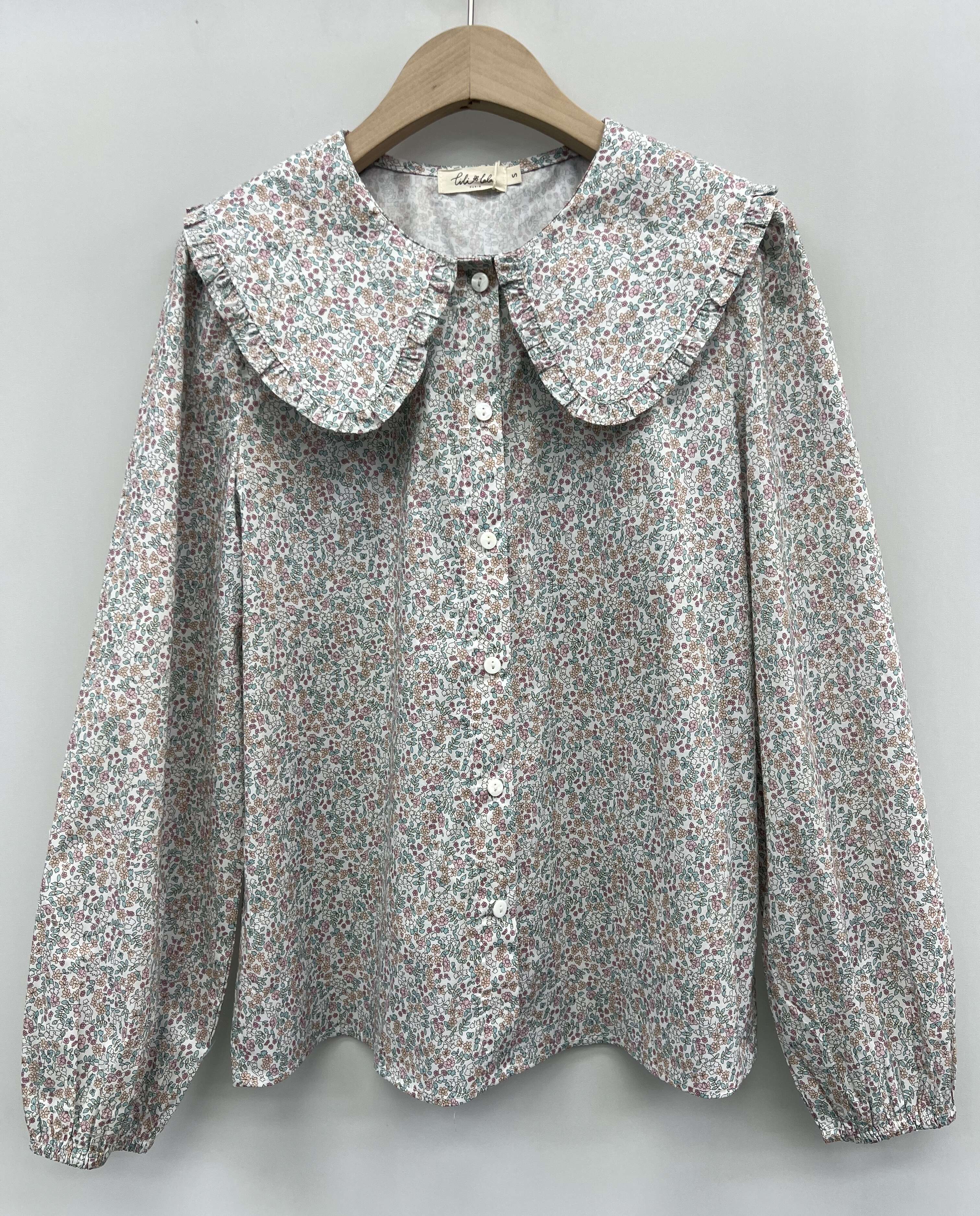 Zwiewna koszula o luźnym kroju z efektownym kołnierzem i modnym, wielokolorowym printem w drobne kwiaty.