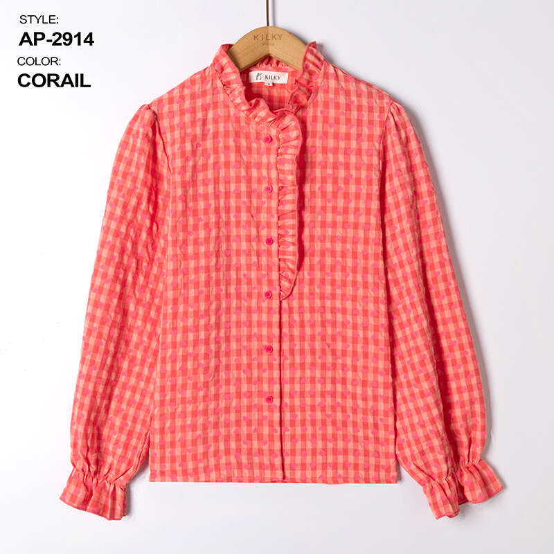 Koszula HAPPY to propozycja dla kobiet ceniących oryginalne wzornictwo połączone z wygodą. Dostępna w modnych kolorach: różowy, liliowy, koral i błękitny, sprawdzi się w każdej kolekcji – zarówno tej codziennej, jak i casualowej biznesowej. Komfortowy fason z subtelnymi falbankami przy kołnierzu i rękawach podkreśla kobiecy styl, a wysokogatunkowy materiał gwarantuje trwałość i wygodę noszenia. Koszula idealna do jeansów, spódnic czy bazowych garniturów. Doskonały wybór do sprzedaży hurtowej na sezon wiosna-lato!