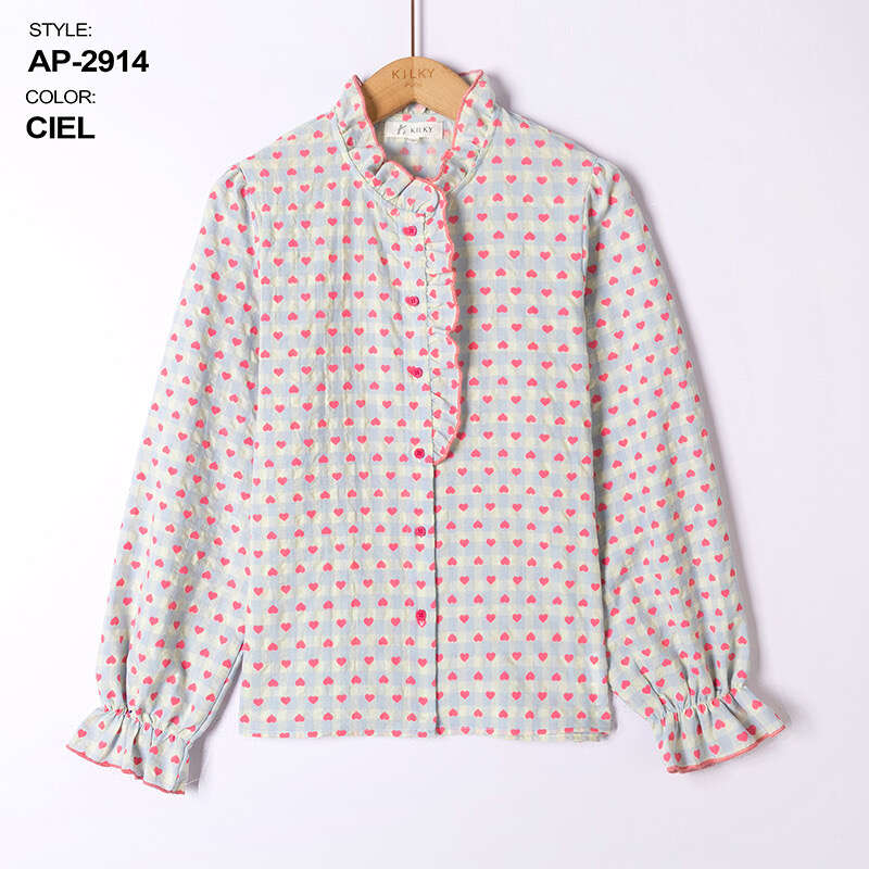 Delikatna koszula z falbanką, o wygodnym kroju z długim rękawem. Subtelny print i kobiece detale dodają uroku każdej stylizacji.