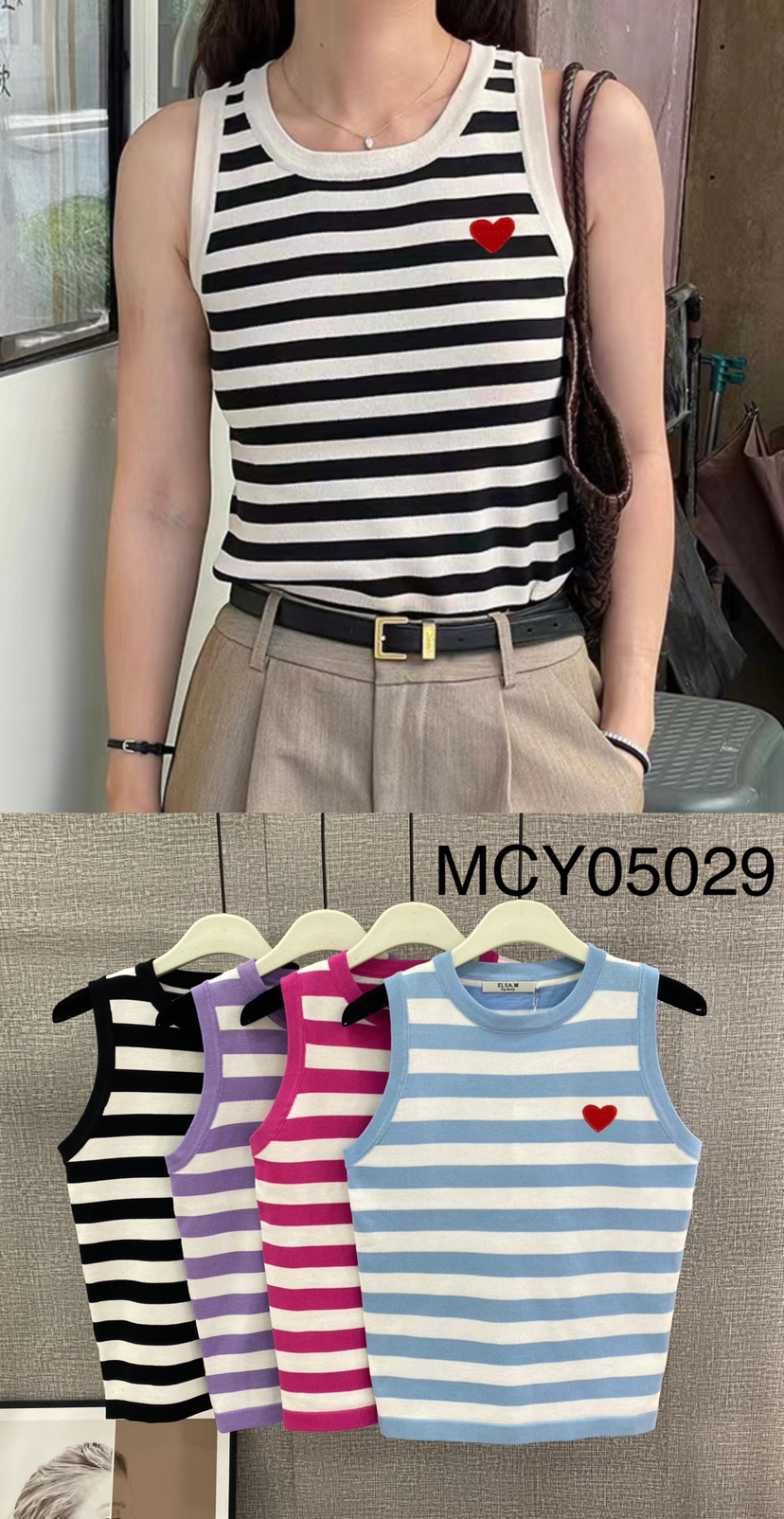 Bluzki PINTEREST to połączenie ponadczasowego stylu i uniwersalnej wygody, które oczarują Twoich klientów. Dostępna w eleganckim białym kolorze z kontrastującymi, czarnymi paskami oraz uroczym detalem w postaci czerwonego serca, ta bluzka bez rękawów świetnie komponuje się zarówno z klasycznymi spodniami, jak i casualowymi jeansami. Wykonana z wysokiej jakości, oddychającego materiału, gwarantuje komfort noszenia przez cały dzień. Idealna na wiosnę i lato, do pracy, na spotkania czy luźne wyjścia – sprawdzi się wszędzie tam, gdzie liczy się styl i wygoda. Szeroka dostępność rozmiarów pozwoli trafić w gusta różnych klientek. Zamów już dziś do swojego asortymentu i odpowiedz na najnowsze trendy kobiecej mody!