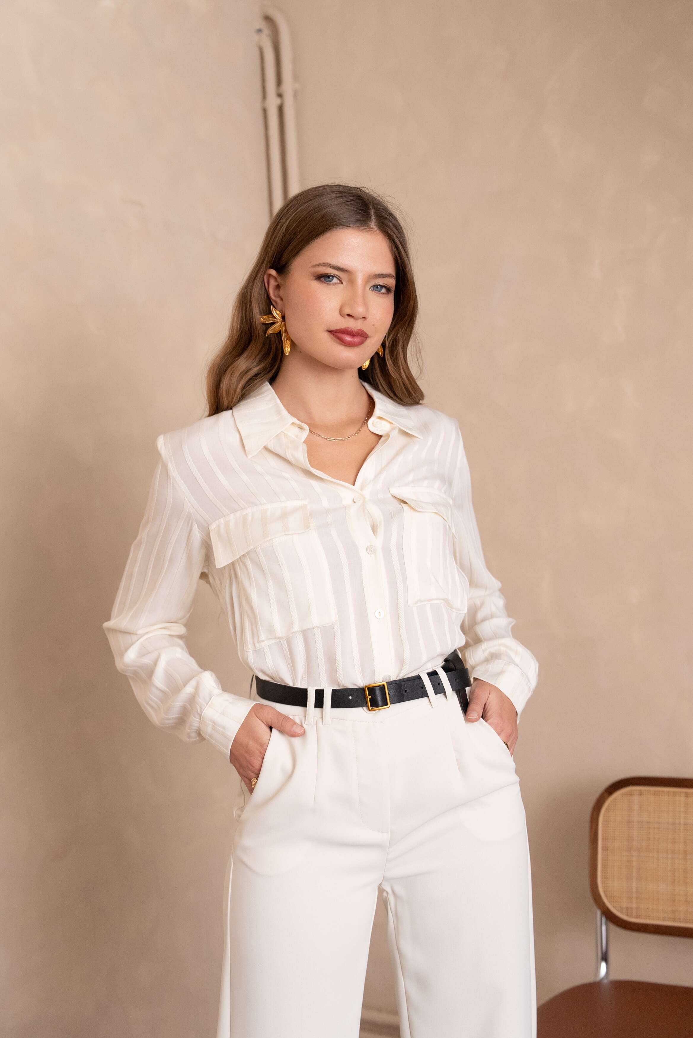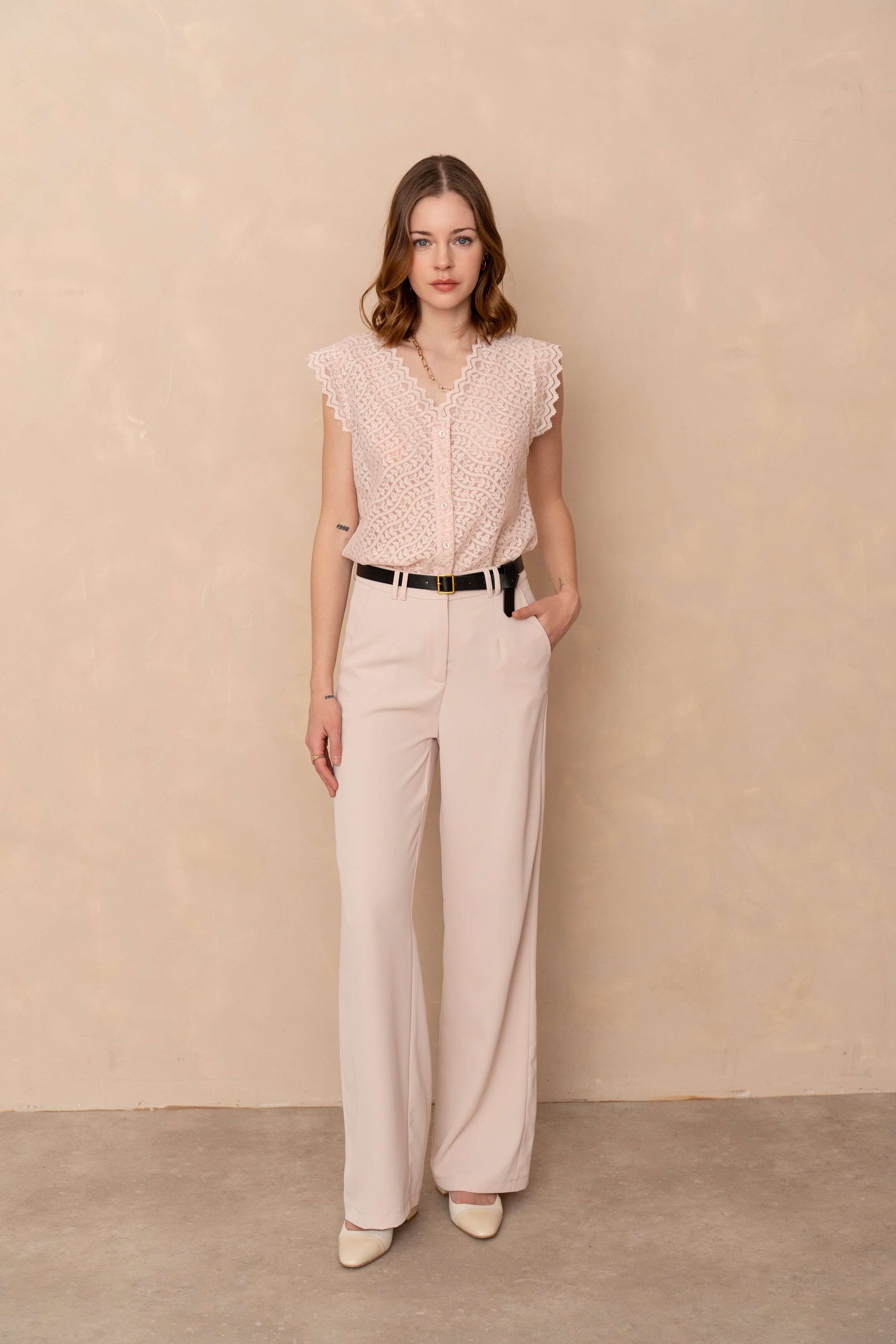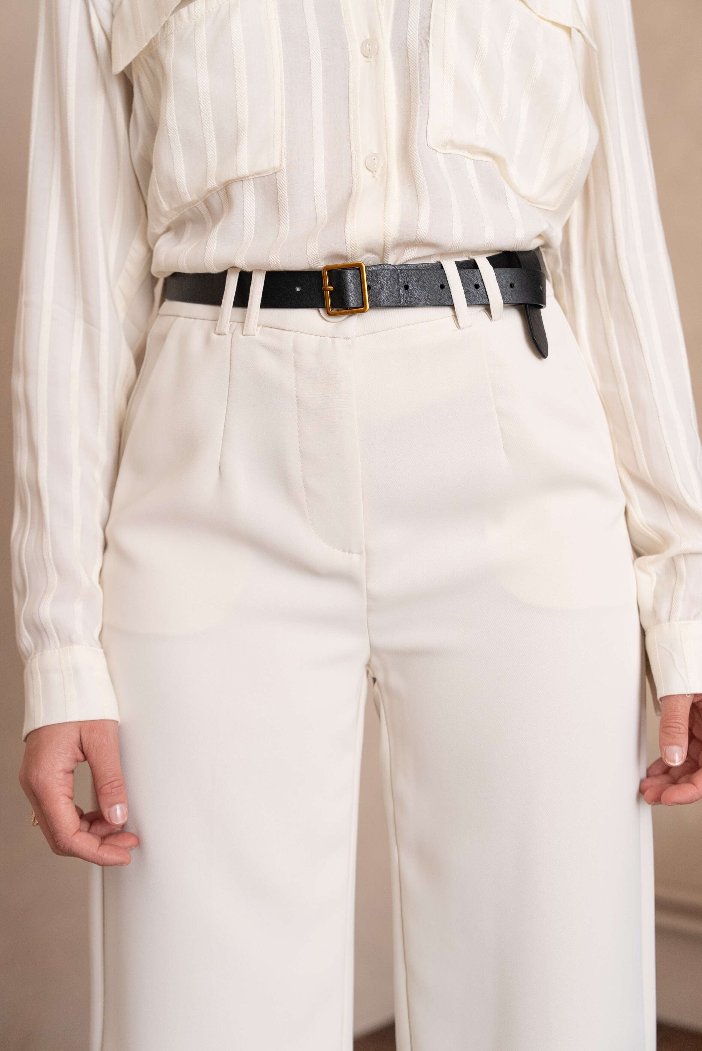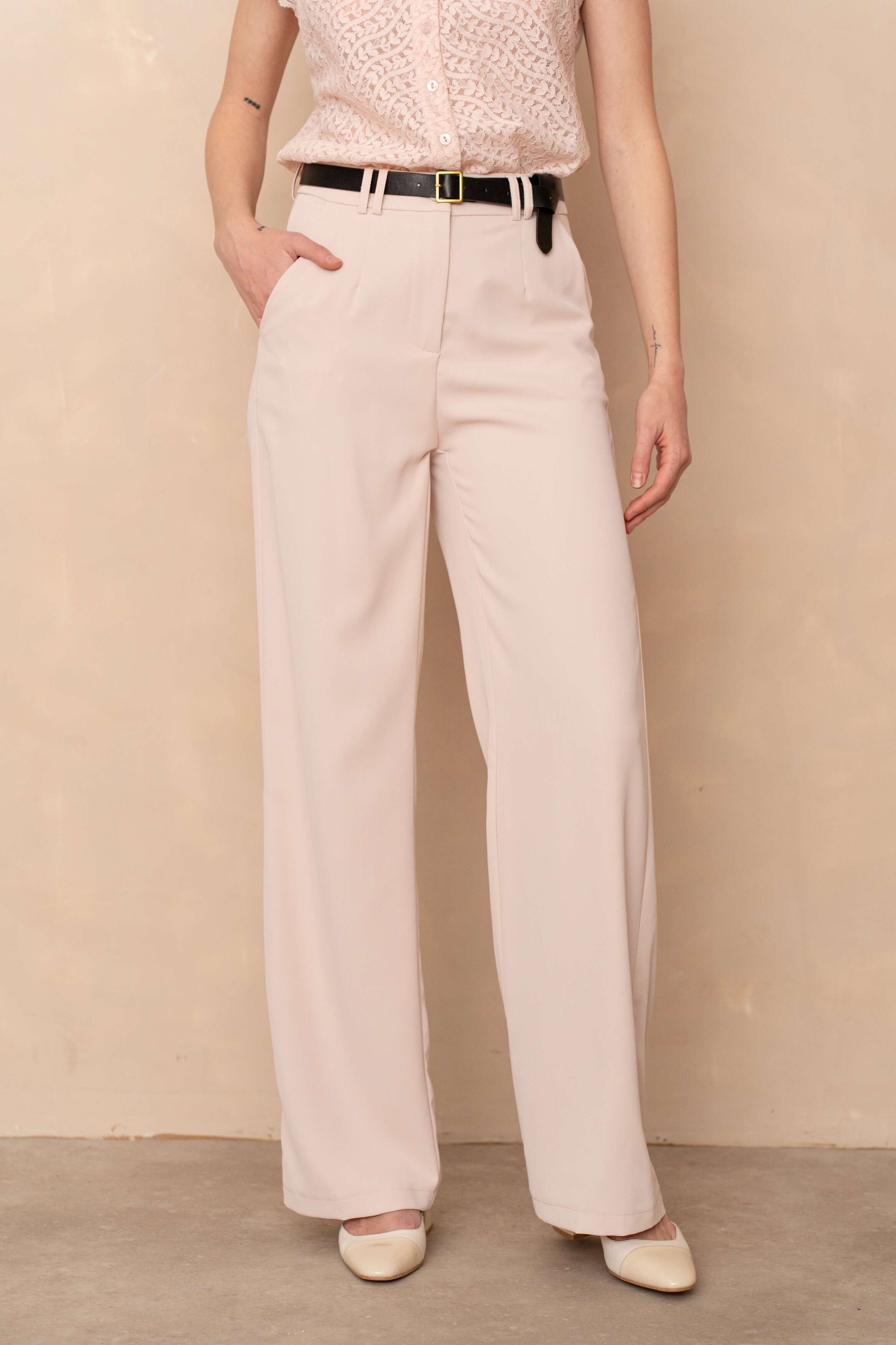 Szerokie, stylowe spodnie o eleganckim kroju, z wysokim stanem i praktycznymi kieszeniami – kwintesencja wygody i klasy.