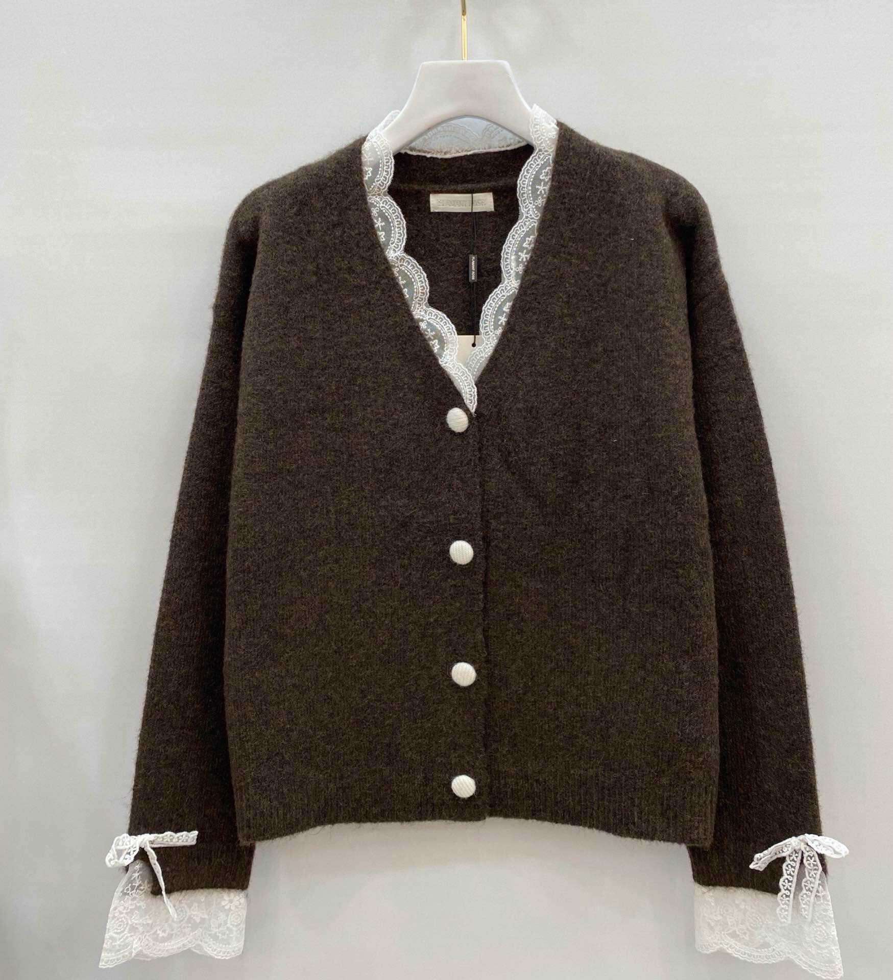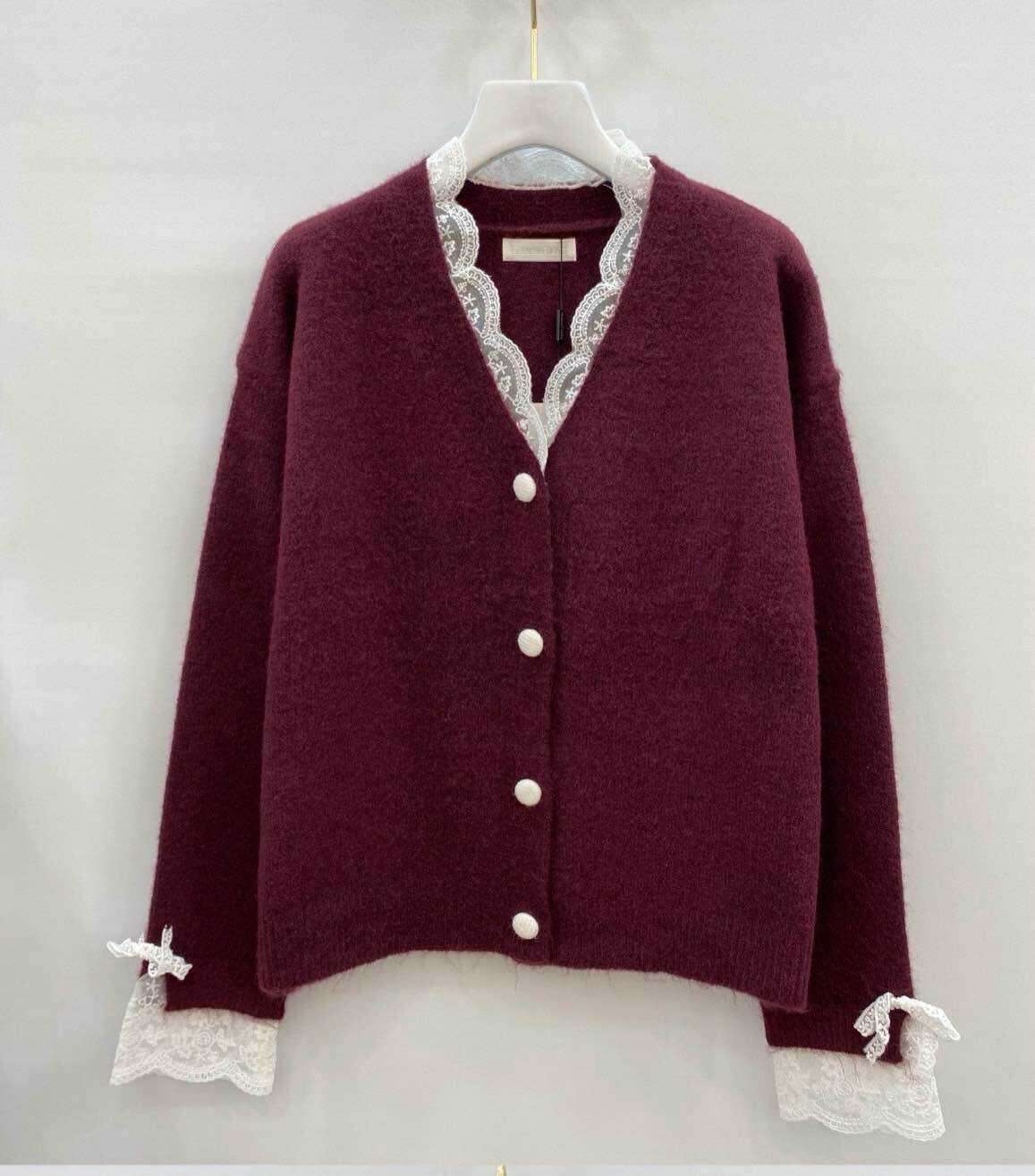 Stylowy sweter z koronkowymi wykończeniami, wygodny krój i subtelne guziki – idealny na każdą okazję.