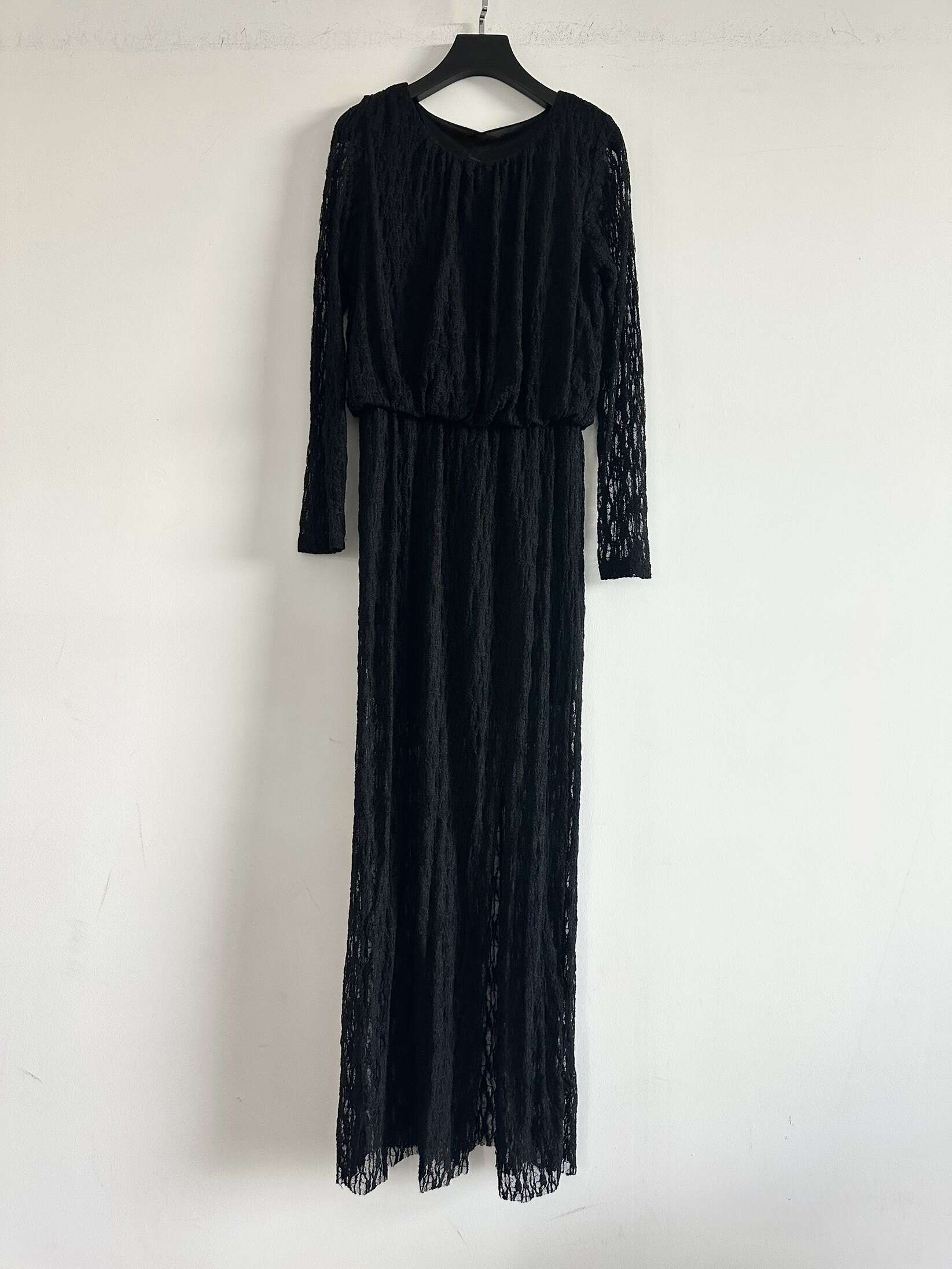 Długa sukienka z delikatnej koronki, elastyczna talia, ultra kobieca forma i wygodne, długie rękawy.