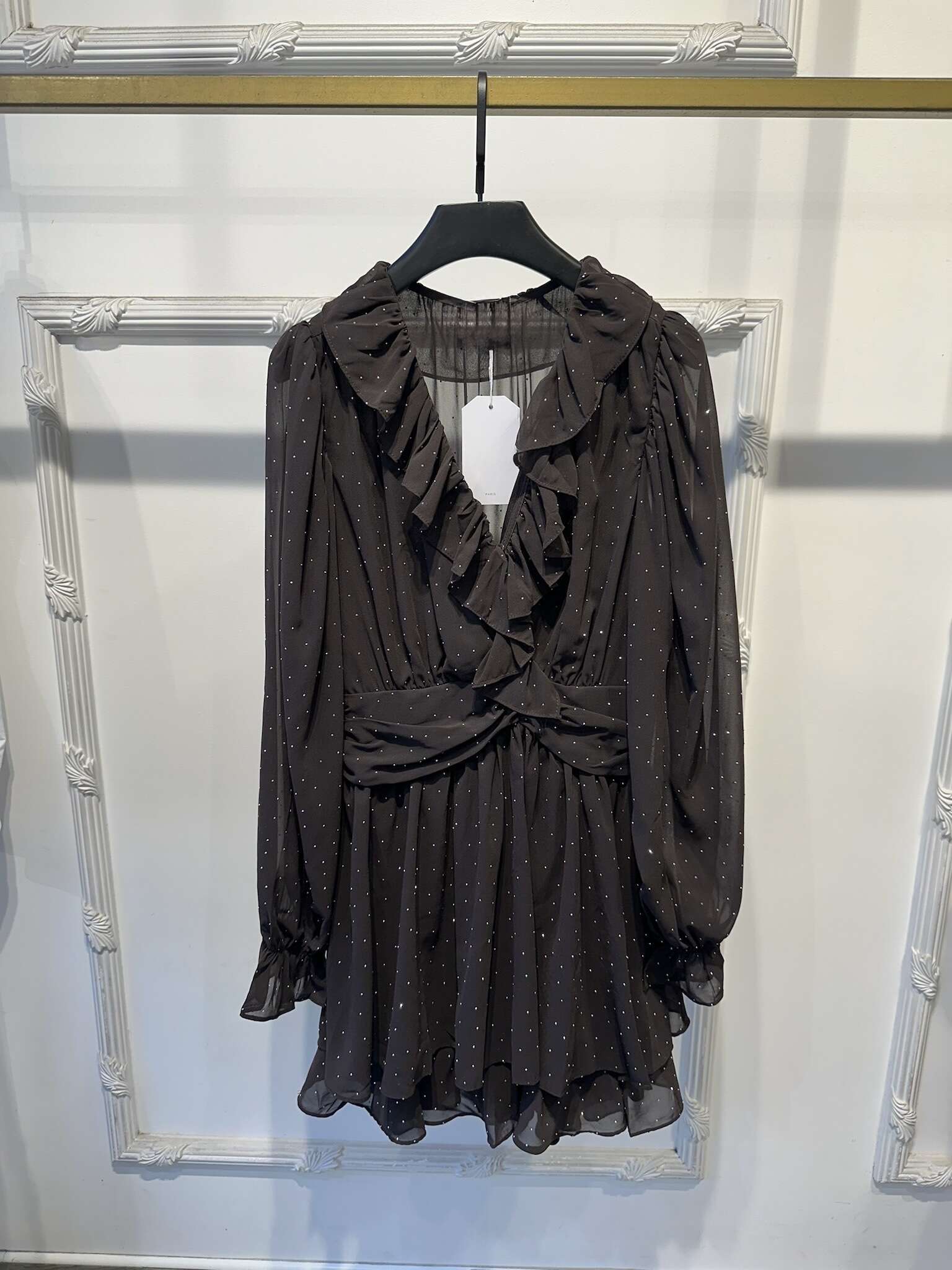 Oferujemy wyjątkową sukienkę dostępna w modnych kolorach: czekoladowy i czarny, która wyróżni każdą kolekcję. Subtelny krój z efektownymi falbanami przy dekolcie i na dole, dopełniony długimi, lekko bufowanymi rękawami, zapewnia komfort noszenia przez cały dzień. Wysokiej jakości, przewiewny materiał doskonale układa się na sylwetce, a uniwersalna długość mini sprawia, że sukienka jest idealna zarówno na stylizacje codzienne, jak i bardziej eleganckie wyjścia. Rekomendowana hurtowo dla butików ceniących klasykę z nutą romantyzmu, sukienka świetnie sprawdzi się w sezonie jesienno-zimowym, jak i wiosennym. Dostępna w szerokiej gamie rozmiarów, z myślą o różnych typach sylwetki – propozycja, która przyciągnie nawet najbardziej wymagające klientki.
