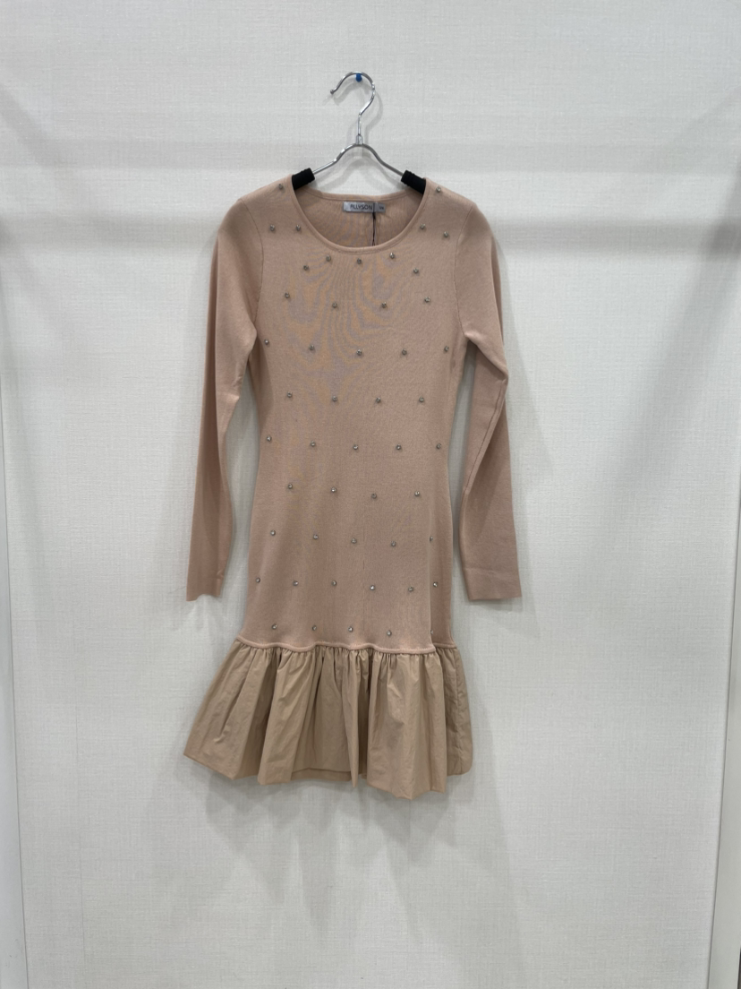 Sukienka PORTOFINO to propozycja dla kobiet ceniących elegancję połączoną z wygodą. Dostępna w uniwersalnych kolorach czarnym oraz beżowym, wyróżnia się dopracowanym fasonem podkreślającym sylwetkę oraz dekoracyjnymi perełkami na całej długości. Falbana na dole dodaje lekkości i kobiecego uroku. Sukienka sprawdzi się zarówno na wieczorne wyjścia, jak i formalne spotkania, oferując szeroki wybór rozmiarów. Starannie dobrane materiały gwarantują trwałość i komfort noszenia. Idealna propozycja do hurtowej sprzedaży – zachwyci nawet najbardziej wymagających klientek.