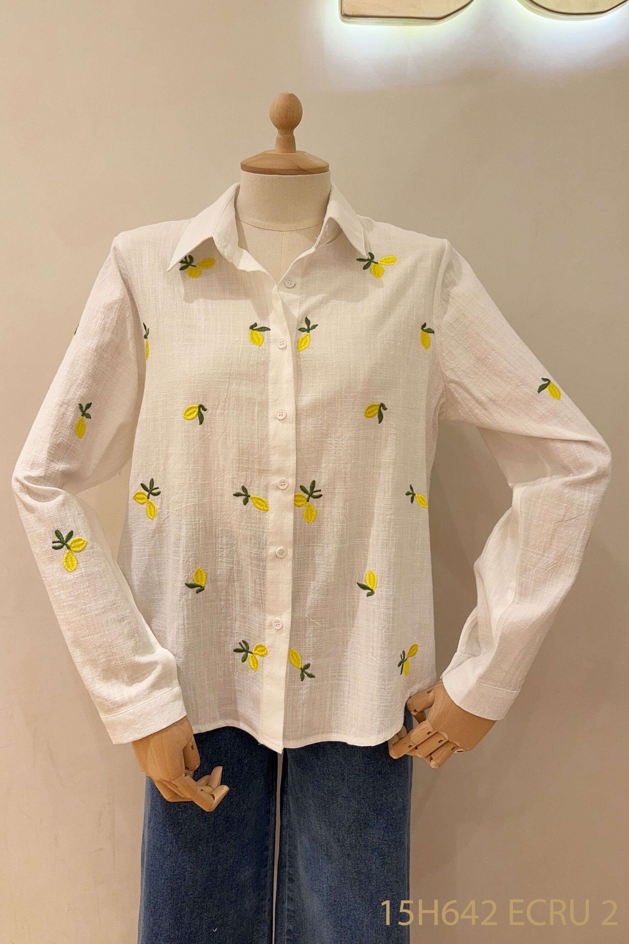 Koszula o klasycznym kroju z oryginalnym cytrynowym haftem; lekka, przewiewna i stylowa propozycja na co dzień.