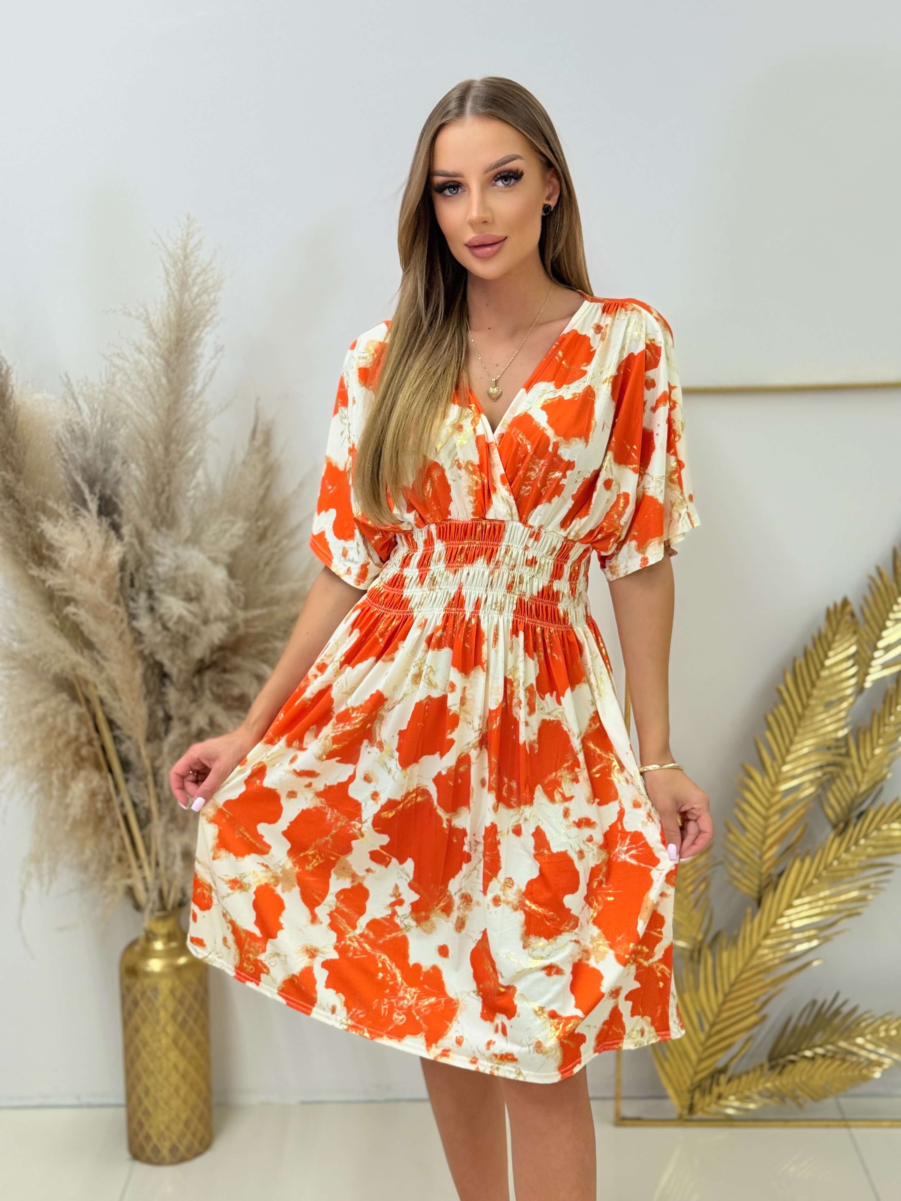 Odkryj sukienki z chłodnego materiału dostępne w czterech niezwykle stylowych kolorach: błękitny, czarny, granat oraz pomarańczowy. Lekka tkanina zapewnia komfort nawet w najcieplejsze dni, a elastyczna talia i kopertowy dekolt pięknie podkreślają sylwetkę. Universalny krój pasuje do każdej figury, pozwalając klientkom poczuć się swobodnie i stylowo zarówno na co dzień, jak i podczas letnich przyjęć czy wakacyjnych wyjazdów. Idealna propozycja do sprzedaży hurtowej dla sklepów ceniących modne, wygodne oraz funkcjonalne rozwiązania.