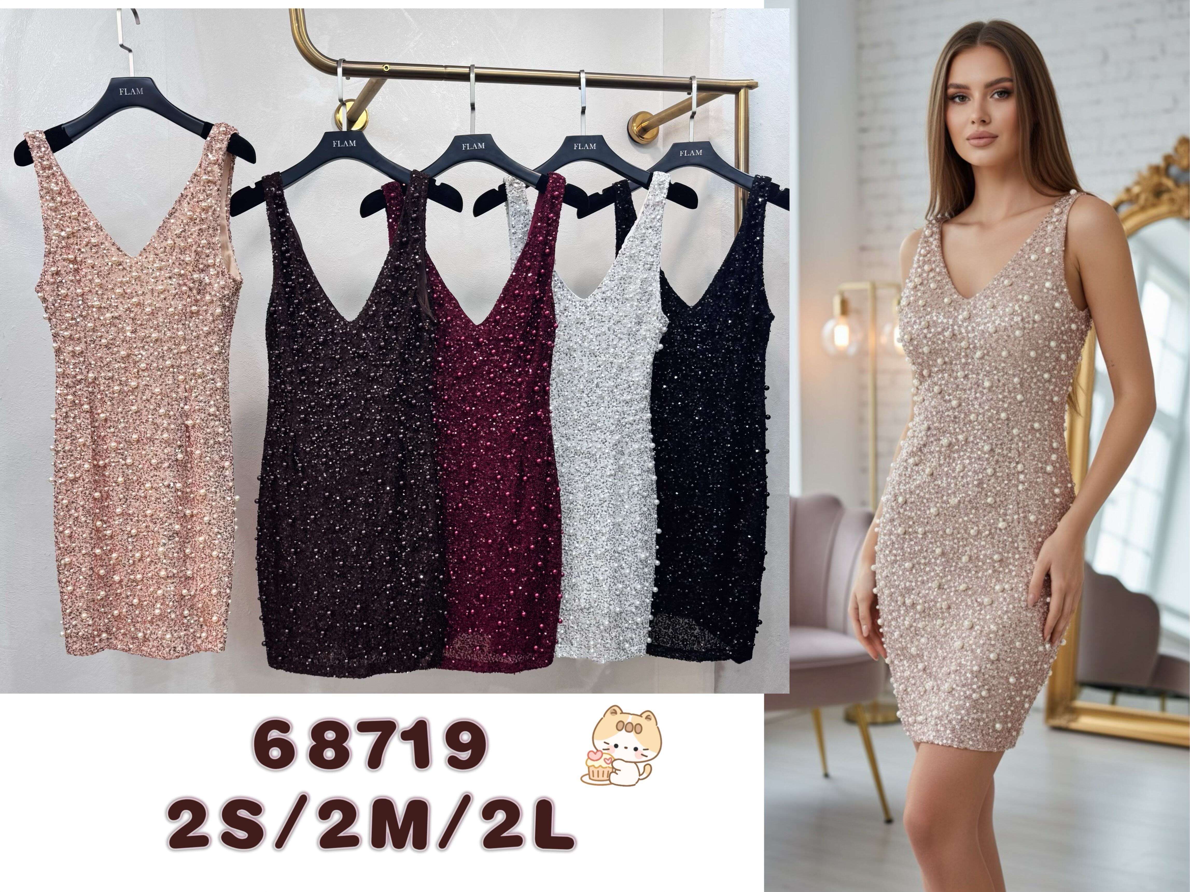 to propozycja stworzona z myślą o kobietach ceniących wyjątkowy styl i najwyższą jakość wykonania. Model dostępny w klasycznych kolorach – beż, czekoladowy, czarny oraz bordo – co pozwala na dopasowanie do każdej okazji i preferencji klientek. Dopasowany fason podkreśla sylwetkę, a bogate zdobienia z pereł nadają całości luksusowego charakteru. Sukienka świetnie sprawdzi się na wyjątkowe wydarzenia – wesela, przyjęcia czy bankiety. Miękki i elastyczny materiał gwarantuje wygodę noszenia oraz atrakcyjną prezentację w każdej rozmiarówce. To idealny wybór do hurtowej sprzedaży dla butików i sklepów, które chcą oferować swoim klientkom modę na najwyższym poziomie.