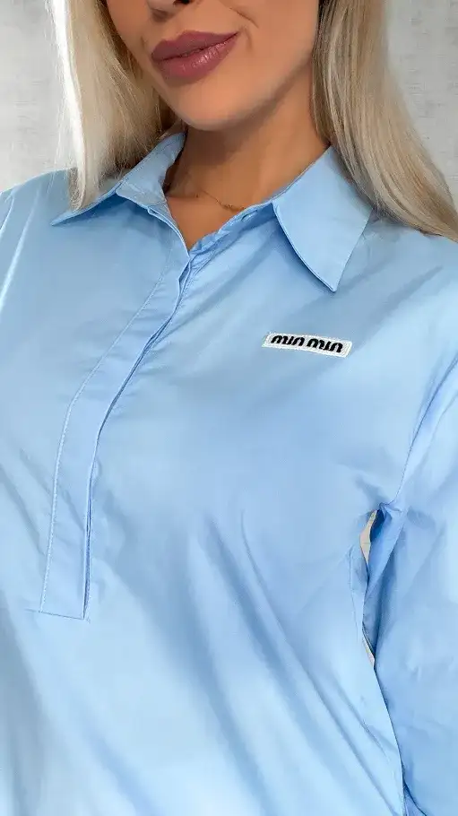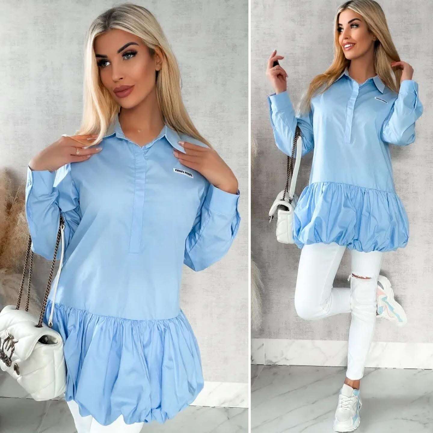 Niebieska sukienka o koszulowym kroju z unikatowo marszczonym dołem. Idealna na co dzień – wygodna, lekka i stylowa!