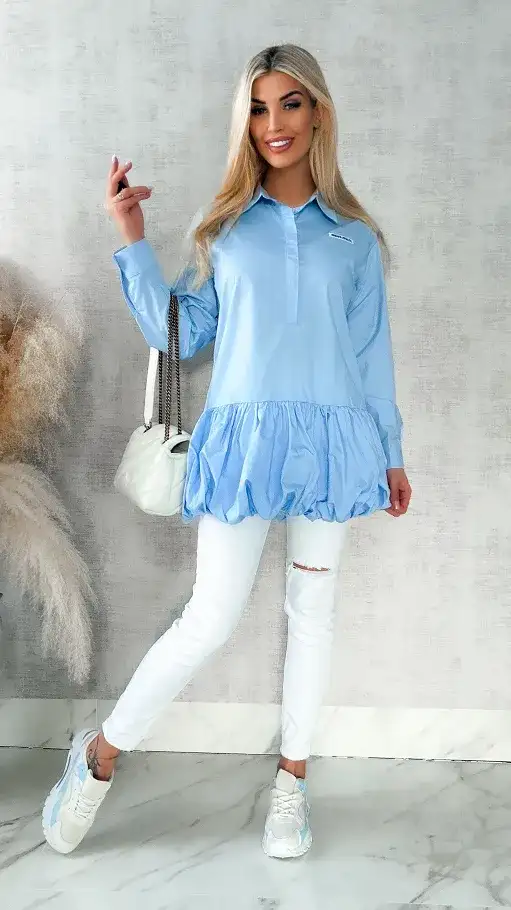 Sukienka BLURRY w kolorze niebieskim to propozycja skierowana do klientek szukających modnych, komfortowych rozwiązań na każdy dzień. Balonowy dół z subtelnymi marszczeniami nadaje całości wyjątkowego charakteru, a luźny, koszulowy fason zapewnia maksymalną wygodę noszenia. Wysokiej jakości tkanina jest przyjemna dla skóry oraz łatwa w pielęgnacji, co gwarantuje długotrwałe użytkowanie bez utraty estetyki. Idealna do stylizacji zarówno solo, jak i w połączeniu z legginsami lub jeansami. Ten model sprawdzi się na zakupy, spotkania czy codzienne obowiązki, stanowiąc praktyczny wybór do hurtowej sprzedaży dla wymagających sklepów. Dostępny w odcieniu niebieskim oraz kilku rozmiarach – idealna baza w kolekcji nadchodzącego sezonu!