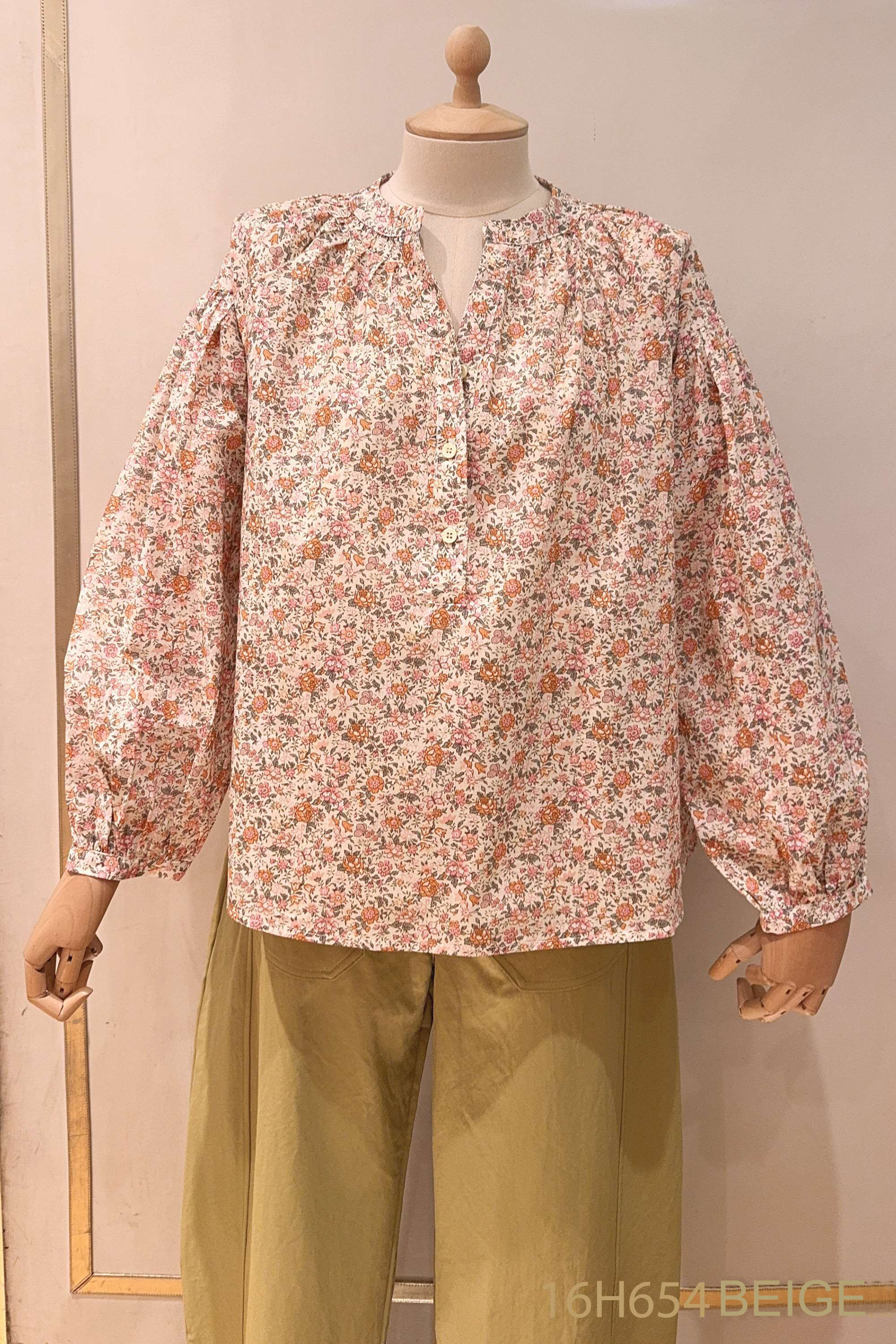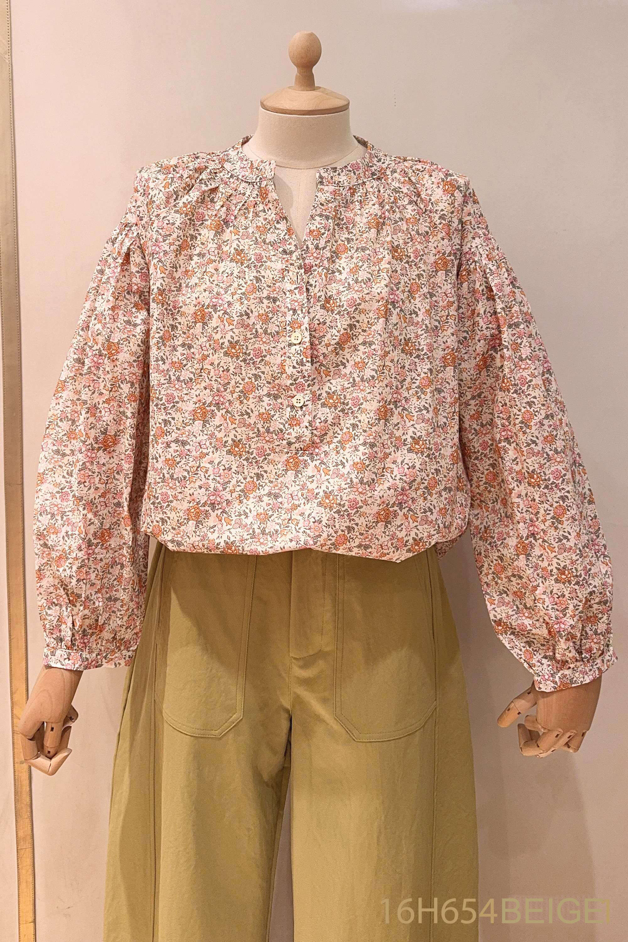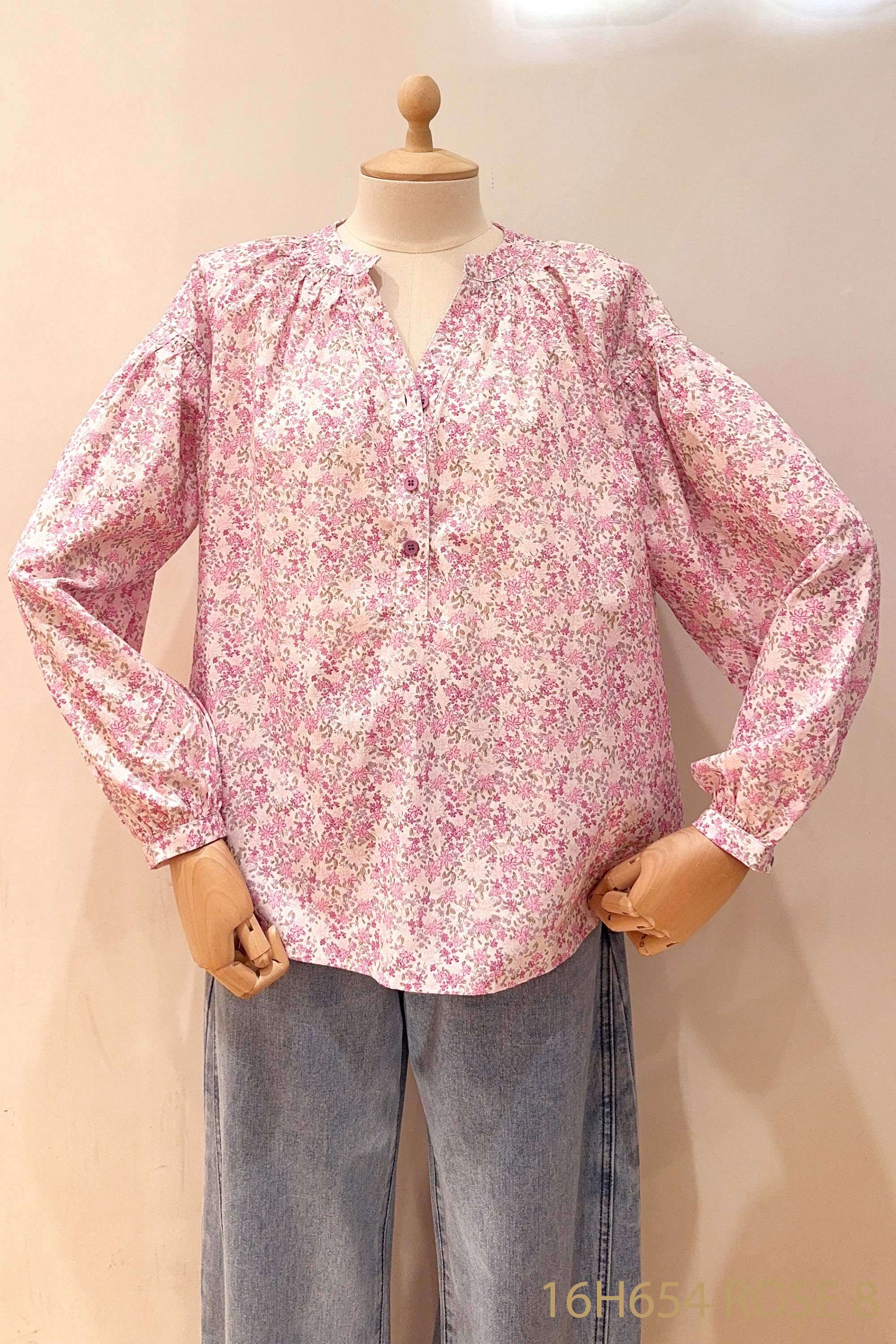 Lekka, luźna bluzka o kwiatowym wzorze, z długim rękawem i delikatnym dekoltem, wykonana z przyjemnego w dotyku materiału – idealna na każdą porę roku.