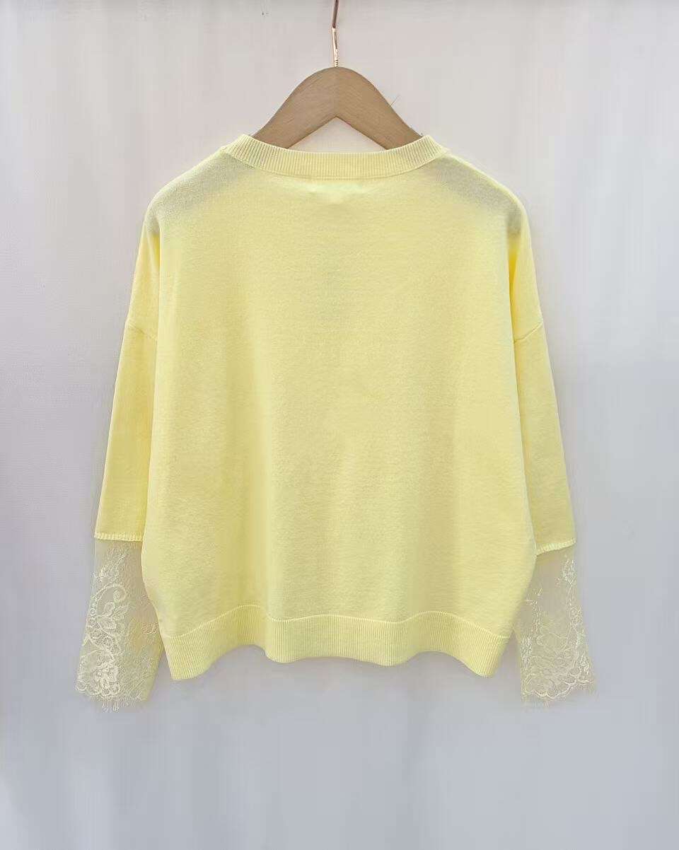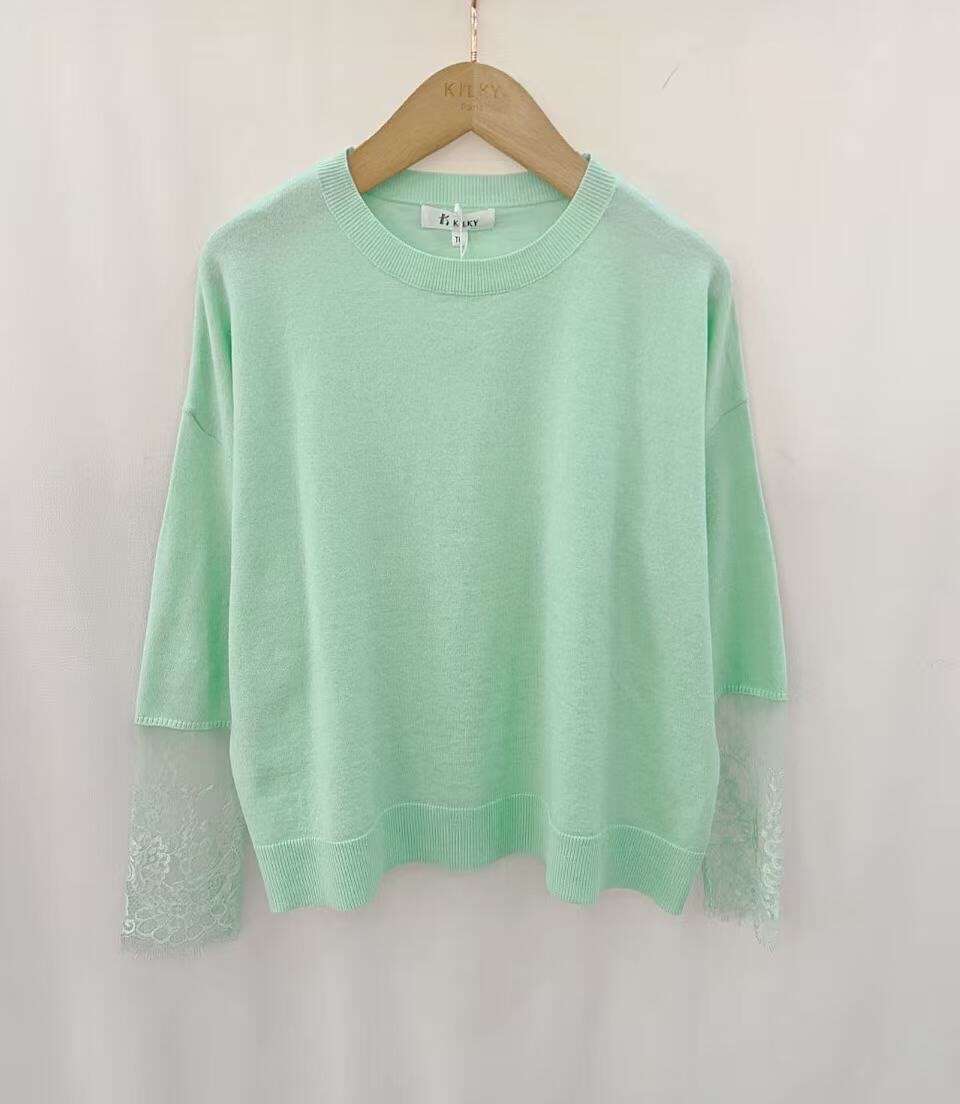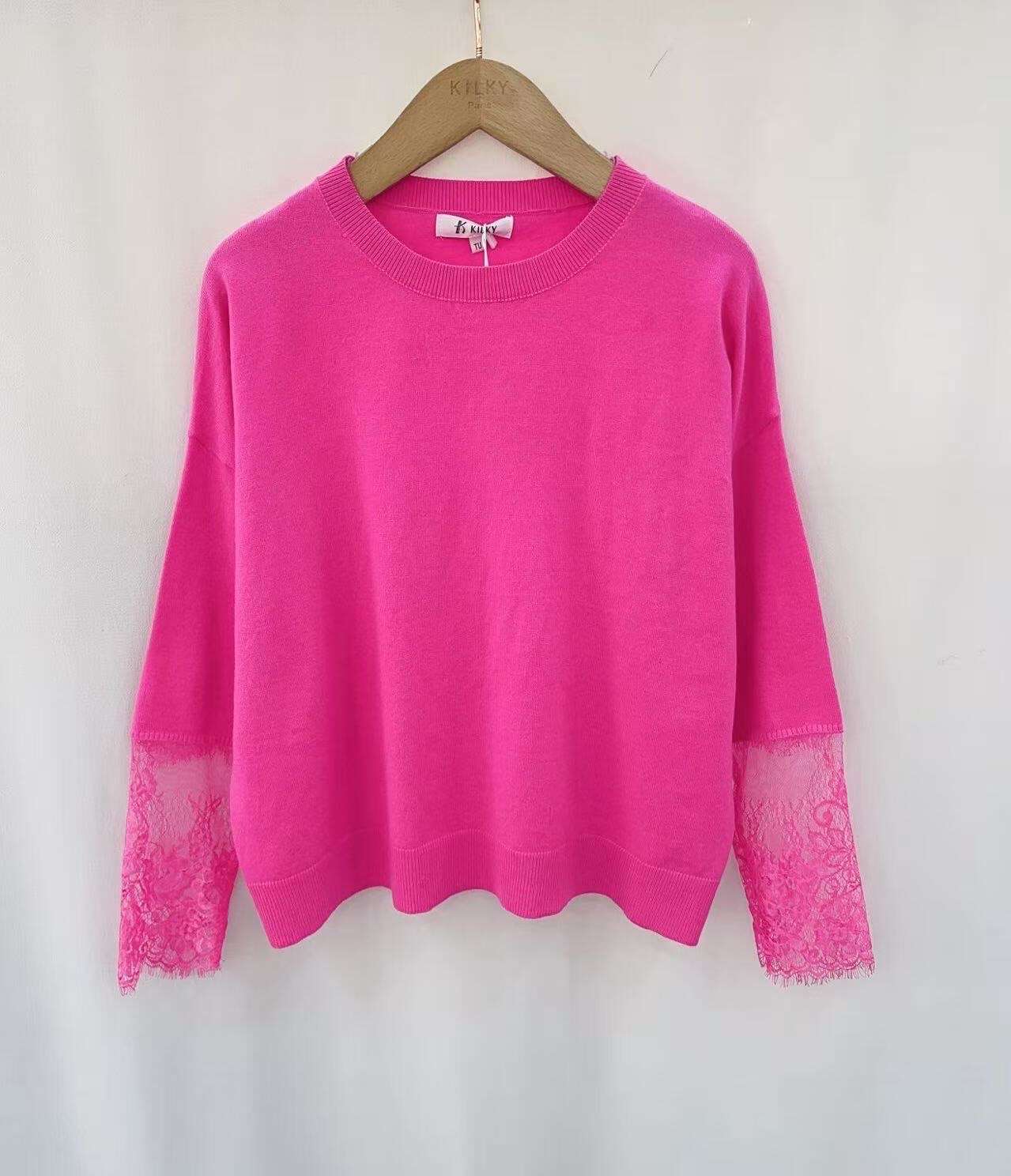 Odkryj modny sweter, który idealnie wpisuje się w aktualne trendy! Model dostępny w szerokiej gamie kolorów: żółty, różowy, miętowy, fuksja, czarny, błękitny oraz biały – dzięki temu z łatwością stworzysz różnorodne kolekcje dla swoich klientek. Wykonany z miękkiego, przyjemnego w dotyku materiału, zapewnia komfort przez cały dzień. Prosty, luźny krój z delikatnym wykończeniem rękawów w formie subtelnej koronki nadaje całości niepowtarzalnego charakteru. Sweter świetnie sprawdzi się w stylizacjach casualowych, do pracy, na spotkania czy spacery. Dostępność rozmiarów pozwala na idealne dopasowanie do każdej sylwetki. Wybierz ten produkt do swojego asortymentu hurtowego i zaoferuj swoim klientkom wyjątkową jakość oraz styl.
