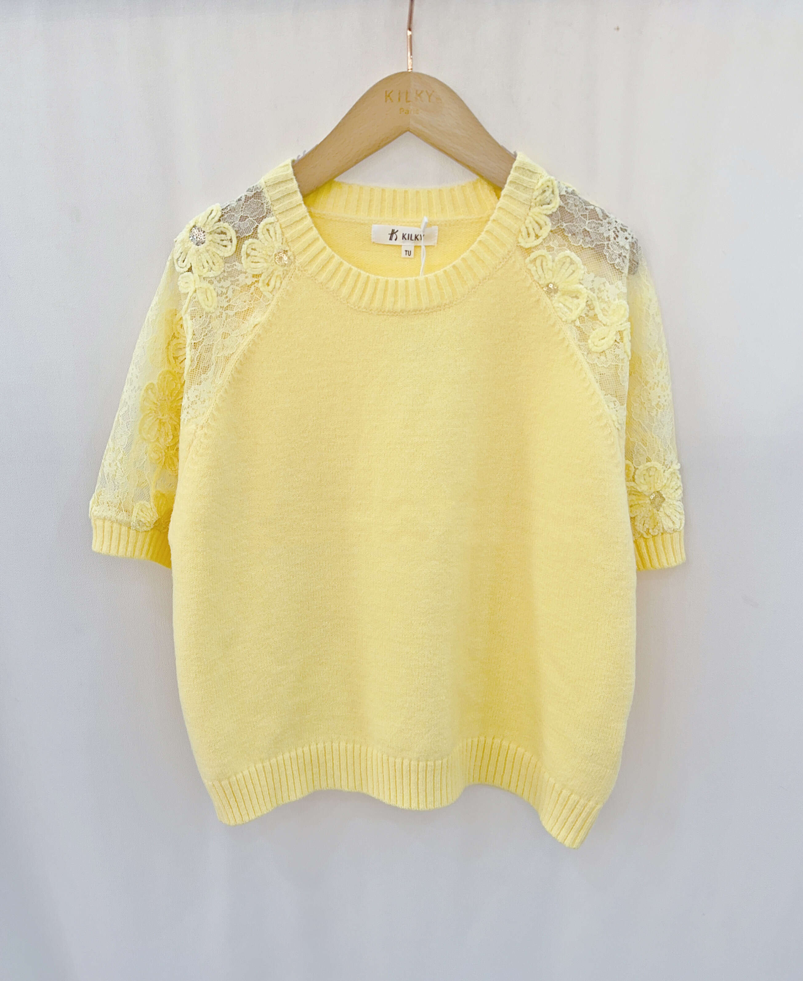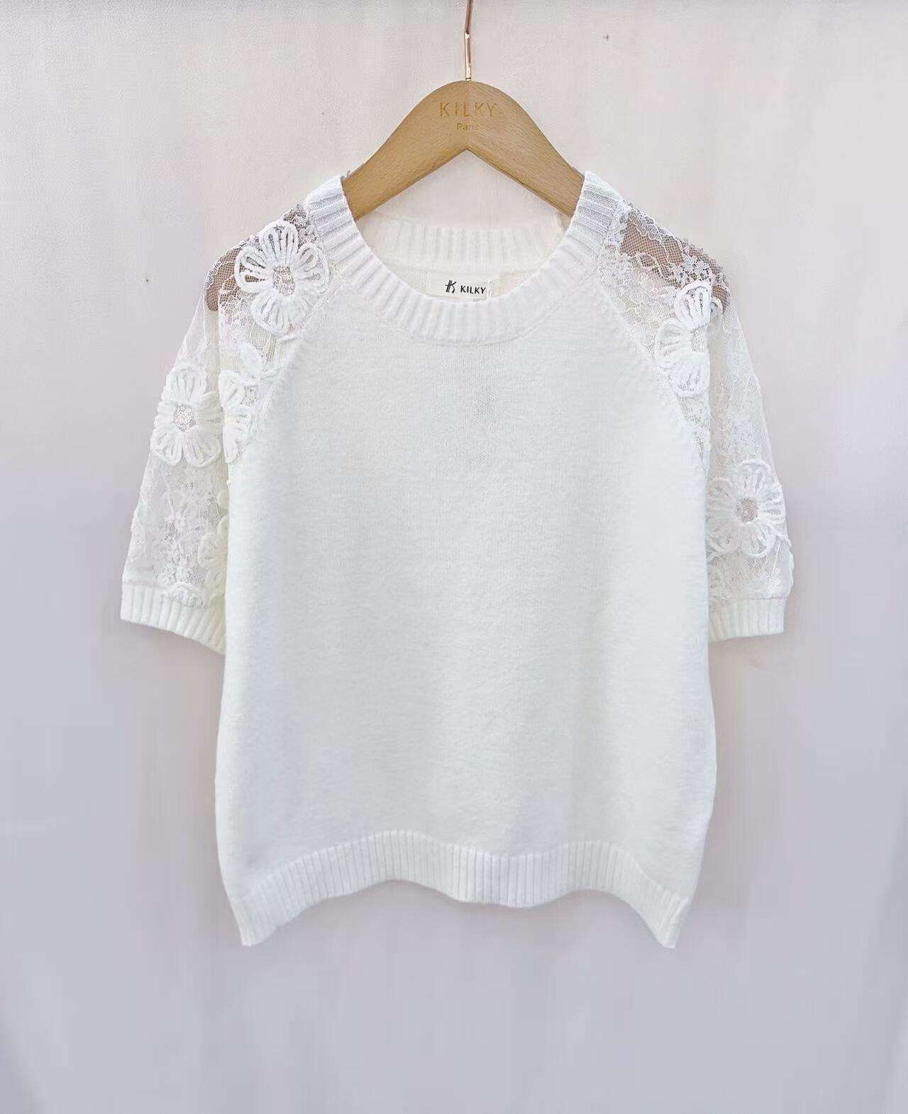 Sweter ANDROMEDA to propozycja idealna do hurtowej sprzedaży – zachwyca nie tylko jakością wykonania, ale także wyjątkowym stylem. Model wyróżnia się krótkim rękawem wykończonym kwiatową koronką, która dodaje mu lekkości i romantycznego charakteru. Dostępny w sześciu modnych kolorach: żółty, różowy, miętowy, fuksja, ecru, błękitny oraz beż – pozwala na stworzenie atrakcyjnej, różnorodnej kolekcji w Twoim sklepie. Miękki, przyjemny w dotyku materiał gwarantuje komfort noszenia przez cały dzień. Sweter doskonale sprawdza się w codziennych, miejskich stylizacjach oraz jako uzupełnienie eleganckiego looku. Świetny wybór na sezon wiosenno-letni!