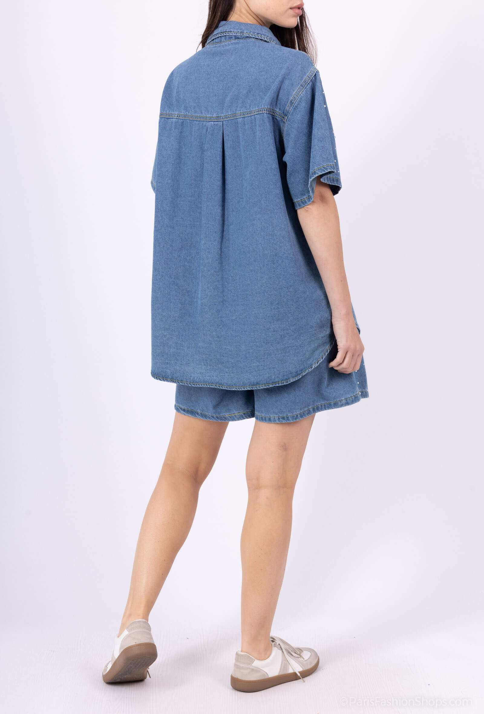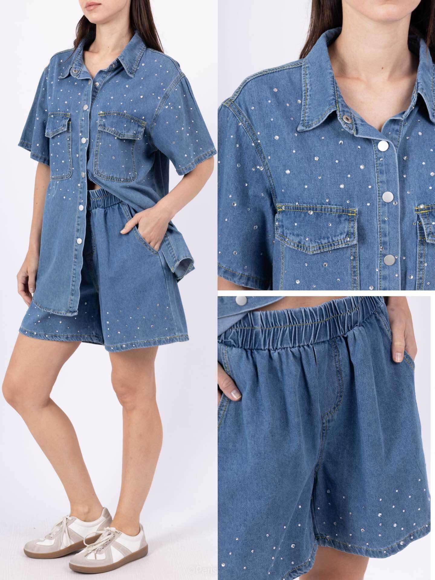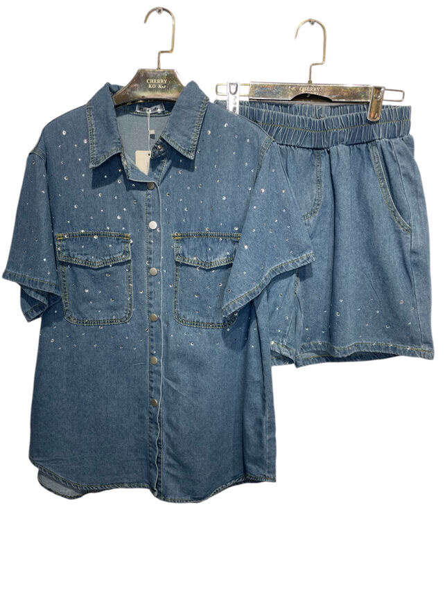 Postaw na praktyczność i styl, wybierając nasz denimowy komplet. Komplet składa się z koszuli o luźnym kroju oraz szortów z wygodną, elastyczną talią. Wysokiej jakości materiał zapewnia komfort noszenia przez cały dzień, a modny jeansowy look sprawdzi się w każdej miejskiej stylizacji. Dostępny w trzech unikatowych kolorach: jasny jeans, czarny oraz ciemny jeans — idealny wybór na lato, wakacje lub casualowe wyjścia. Produkt dostępny w szerokiej gamie rozmiarów, co pozwoli dopasować asortyment do różnorodnych potrzeb Twoich klientów. Postaw na bestseller wśród kompletów na nowy sezon!