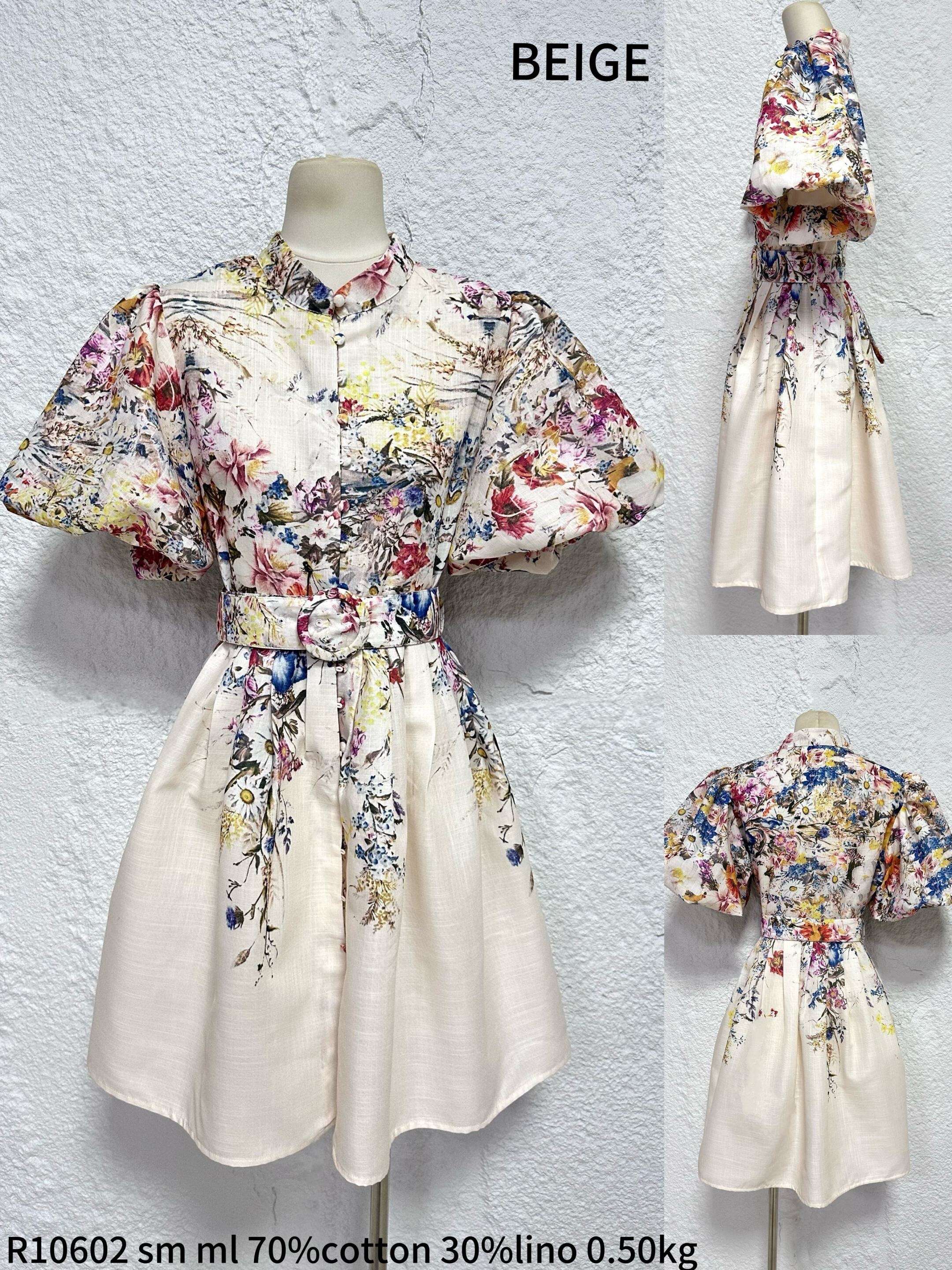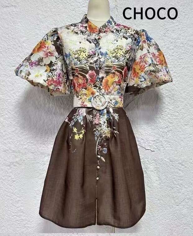 Wyjątkowy fason z kwiatowym printem, rozkloszowany dół, bufiaste rękawy i ozdobny pasek w talii – kobiecy styl i wygoda na każdą okazję.