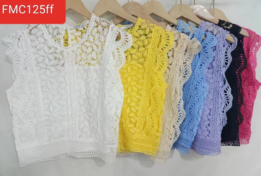 Koronkowa bluzka bez rękawów, lekka i elegancka. Idealna na lato, dostępna w kolorach biały i beż.