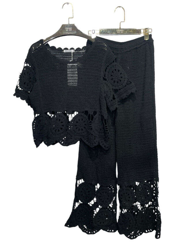 Komplet ANTRACYT to propozycja dla hurtowni, które stawiają na nowoczesną elegancję i naturalny styl. Produkt wyróżnia się niezwykle modnym, ażurowym wykończeniem oraz swobodnym fasonem gwarantującym komfort noszenia. Dostępny w kolorach beż i czarny – uniwersalne barwy świetnie wpisują się w aktualne trendy. Delikatna, oddychająca dzianina z efektem ręcznego wyplatania sprawia, że komplet jest doskonały zarówno na co dzień, jak i na wyjątkowe okazje, np. garden party czy wakacyjny wyjazd. To must-have na nadchodzący sezon – idealny do butików poszukujących unikalnych, stylowych rozwiązań dla swoich klientek.