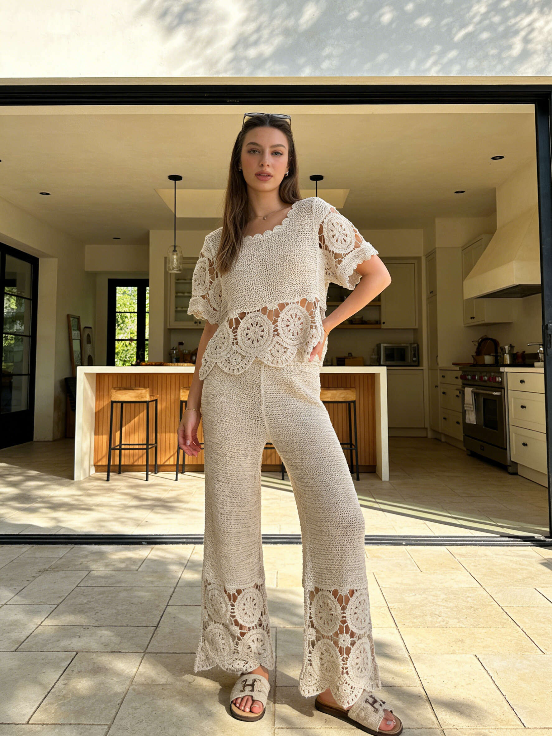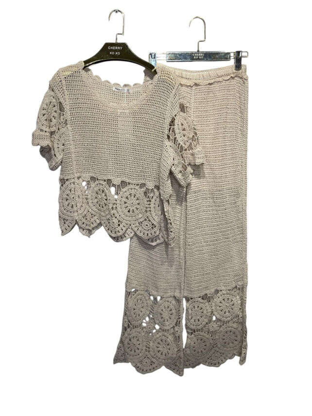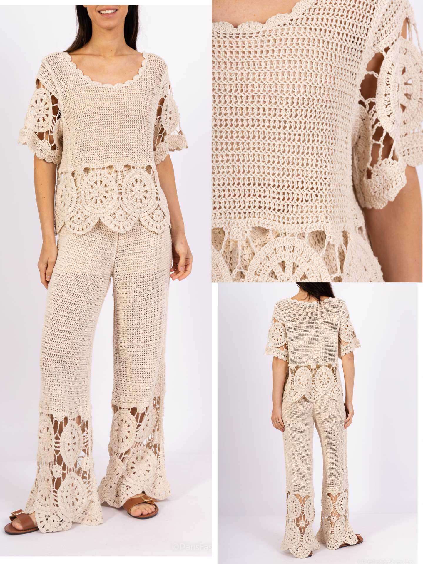 Ażurowy, szydełkowy komplet z efektownymi wycięciami i designerskim wzorem. Wygodny i ultrastylowy na lato.