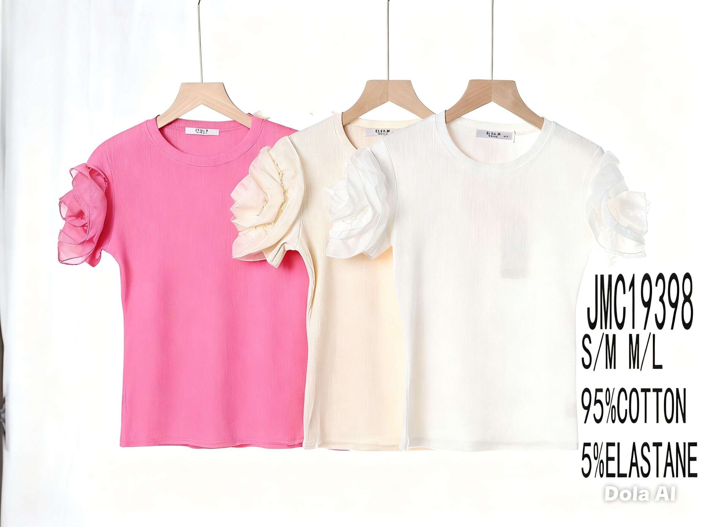 Bluzka MAYA to wyjątkowa propozycja dla kobiet ceniących połączenie wygody z modnym designem. Oferujemy ją w trzech uniwersalnych kolorach – różowym, białym oraz beżowym, dostępnych w rozmiarach S/M oraz M/L, co ułatwia dopasowanie do potrzeb klientek. Model wyróżnia się bufiastymi, tiulowymi rękawami z efektownymi falbanami, które przyciągną wzrok i dodadzą stylizacji dziewczęcego uroku. Wysoka zawartość bawełny (95%) gwarantuje przewiewność oraz komfort noszenia, a domieszka elastanu zapewnia elastyczność i świetne dopasowanie. Bluzka doskonale sprawdzi się zarówno do stylizacji casualowych, jak i eleganckich — idealna na spotkania, do biura czy na wyjście. Zamów do swojego asortymentu bluzki, które będą hitem tego sezonu!