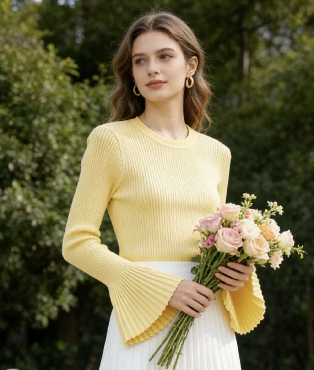 Modna bluzka o dopasowanym fasonie z efektownym, rozszerzanym rękawem. Komfortowa, miękka dzianina idealna na każdą okazję.