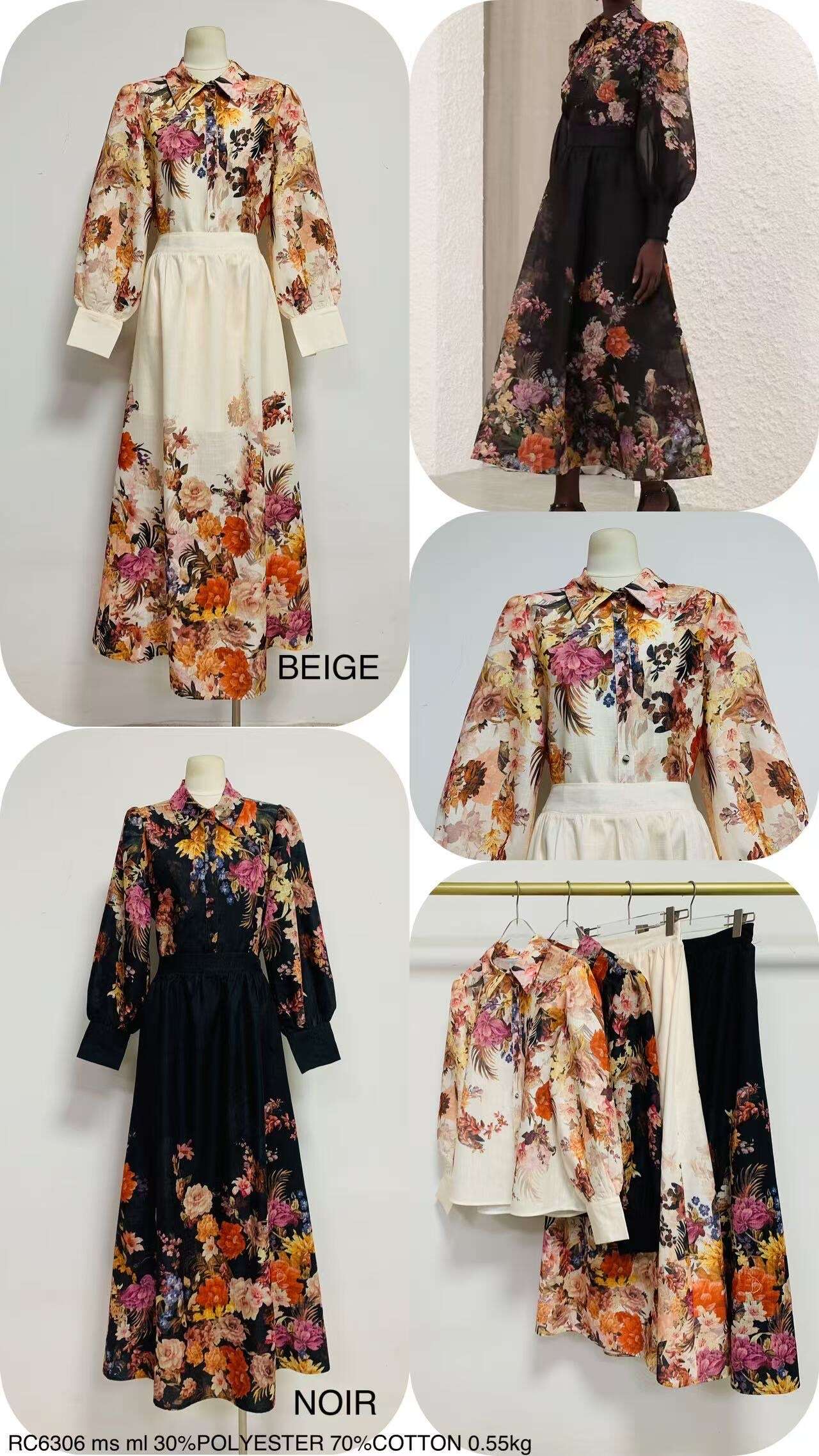 Przedstawiamy wyjątkowy komplet damski MONSTER – must-have w każdym sklepie z odzieżą damską! Model ten dostępny jest w modnym beżowym kolorze, który podkreśla kwiatowy wzór, nadając stylizacjom świeżości i subtelnego uroku. Połączenie przyjemnej w dotyku bawełny (70%) z wytrzymałym poliestrem (30%) gwarantuje komfort noszenia oraz trwałość. Luźna, elegancka koszula z wyrazistym kołnierzem oraz spódnica o pełnej długości sprawdzą się zarówno na co dzień, jak i podczas wyjątkowych okazji. Komplet świetnie wpisuje się w trendy sezonu, przyciągając uwagę klientek szukających zarówno kobiecości, jak i wygody. Różnorodność rozmiarów pozwala dopasować ofertę do szerokiego grona odbiorczyń. Dodaj ten komplet do asortymentu swojego sklepu i zyskaj przewagę na rynku!