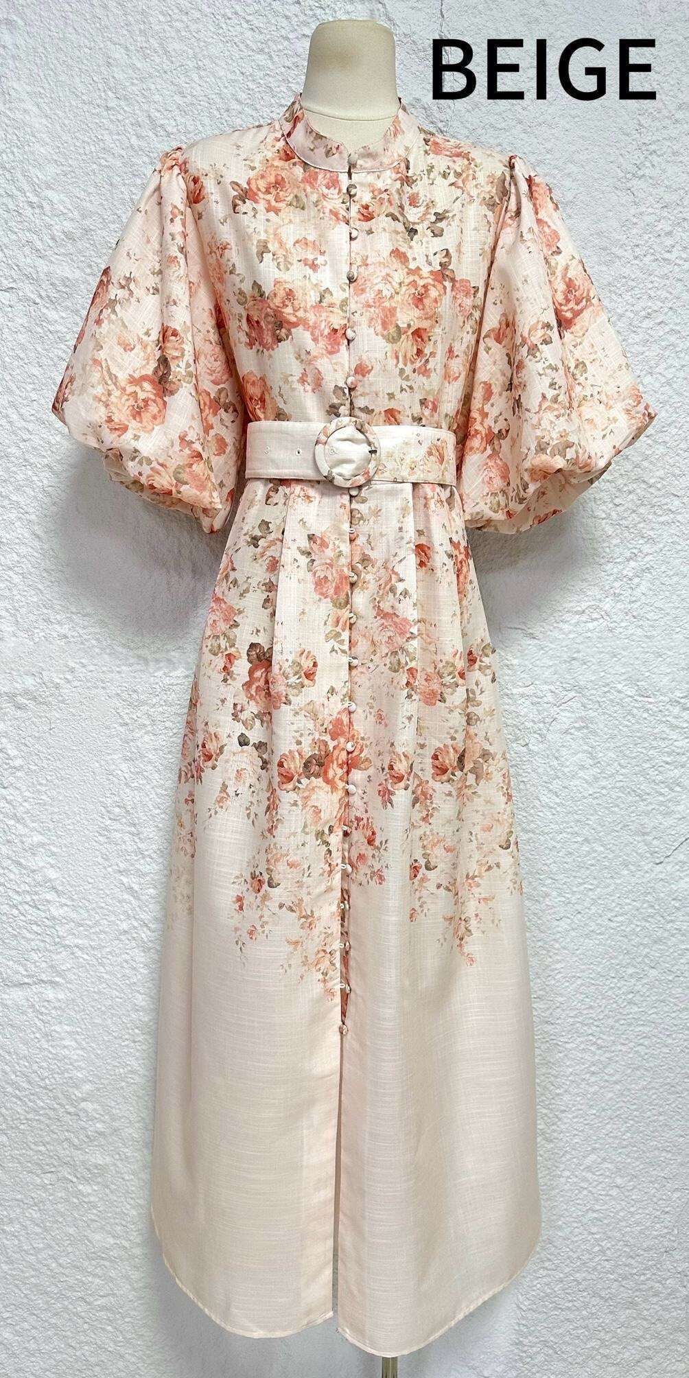 Delikatna sukienka o zwiewnym kroju z bufiastymi rękawami, w beżowym odcieniu i kwiatowym wzorze. Wykonana z wysokiej jakości mieszanki bawełny i lnu – subtelna elegancja na każdą okazję.